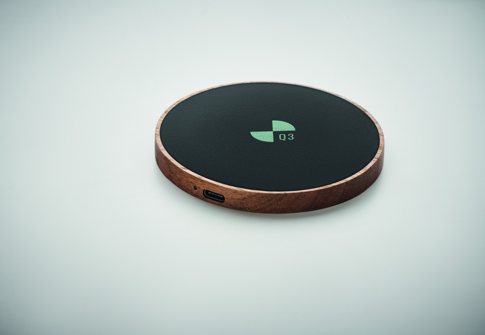 Vezeték nélküli töltő akáciafából és 58% újrahasznosított anyagból (40% újrajhasznosított poliészter és 18% újrahasznosított PU). Csatlakoztassa a számítógéphez, helyezze rá az okostelefont, és hagyja, hogy feltöltődjön. Teljesítmény: (15W). Qi készülékekhez.
