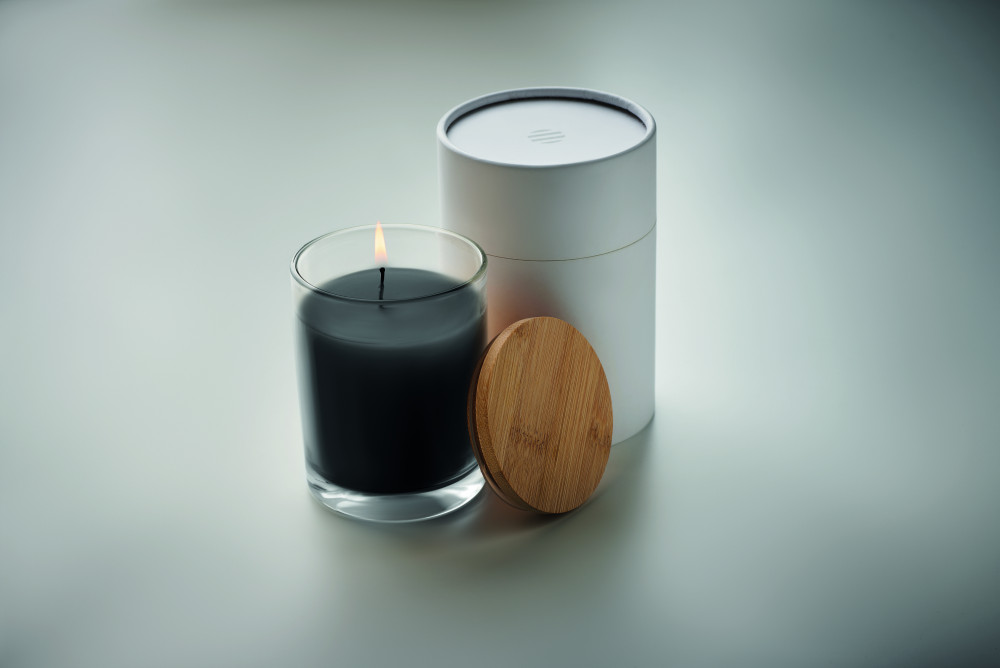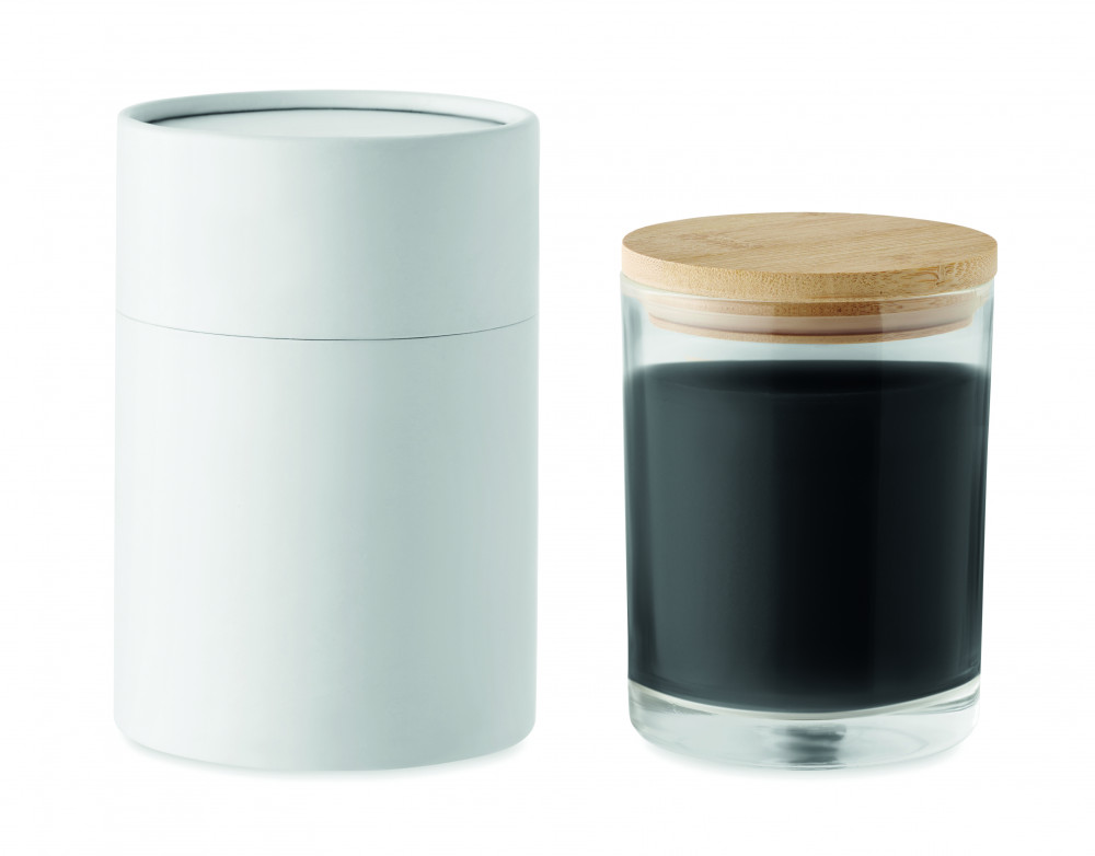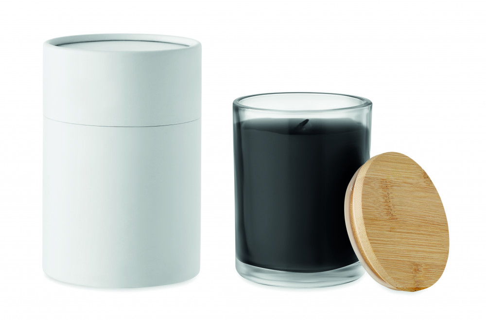 Vanília illatú, növényi alapú viaszgyertya üvegben, bambuszfedéllel, hengeres papír ajándékdobozban. 8 cm átmérőjű. Égési idő: 40 óra. A bambusz természetes anyag, színében, mintázatában és méretében esetenként eltérő lehet.240gr.