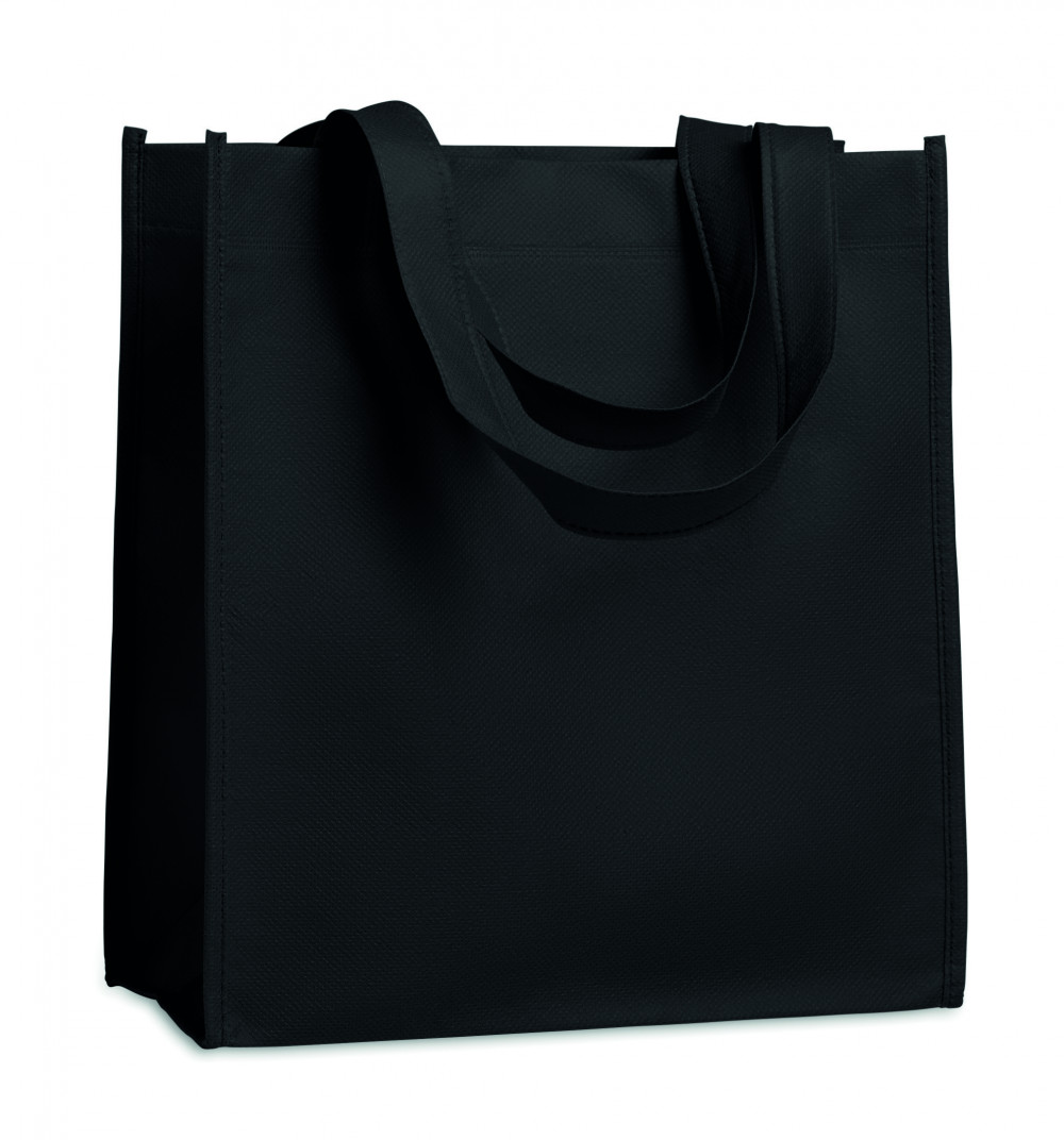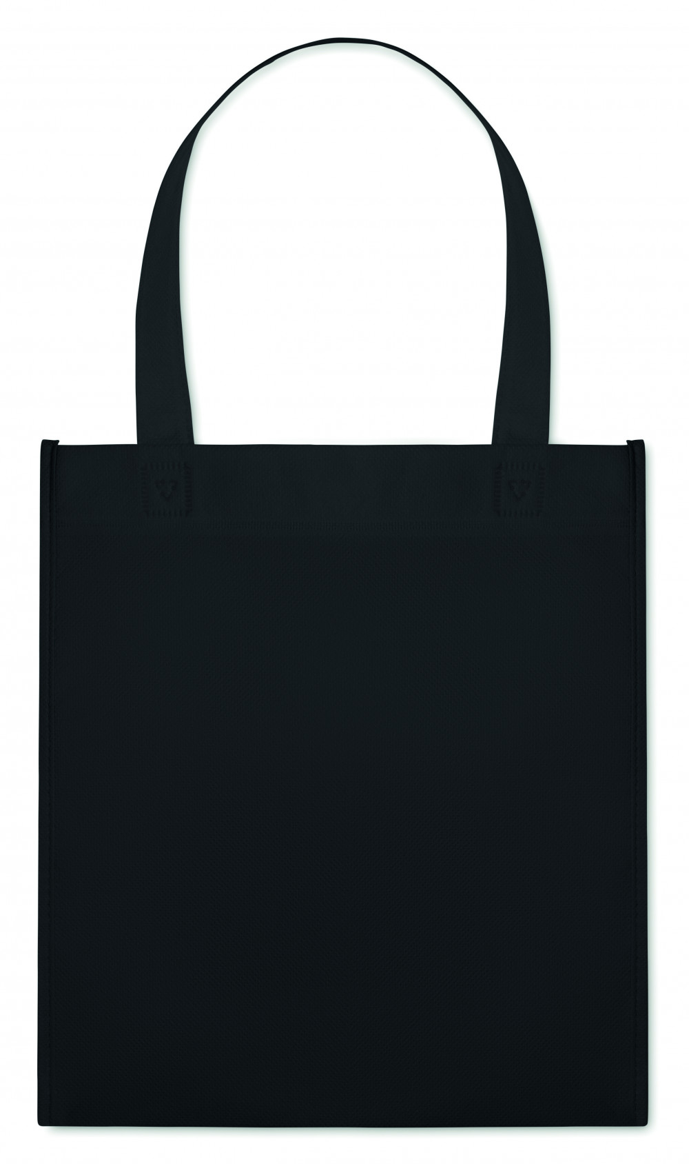Hőforrasztott bevásárlótáska nemszőtt anyagból. Rövid füllel. 80 g vastag anyag.