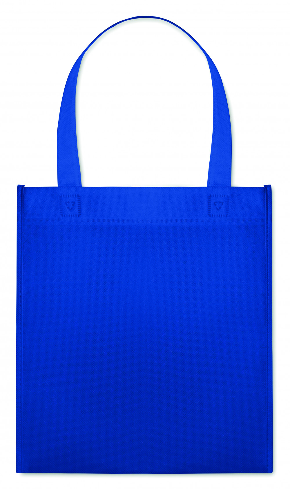 Hőforrasztott bevásárlótáska nemszőtt anyagból. Rövid füllel. 80 g vastag anyag.