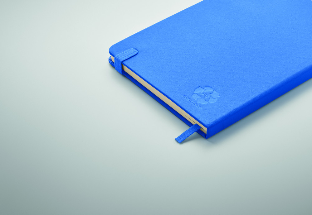 A5 jegyzetfüzet, 70%-ban fogyasztás előtti újrahasznosított bőrből és 30%-ban latexből készült PU borítóval. Cérnafűzött. 192 vonalas oldal újrahasznosított papírból (96 lap). Színben illeszkedő elasztikus zárópánt, tolltartó hurok és könyvjelző szalag.