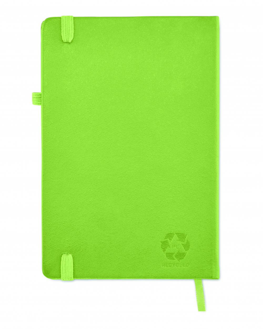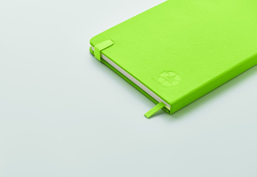 A5 jegyzetfüzet, 70%-ban fogyasztás előtti újrahasznosított bőrből és 30%-ban latexből készült PU borítóval. Cérnafűzött. 192 vonalas oldal újrahasznosított papírból (96 lap). Színben illeszkedő elasztikus zárópánt, tolltartó hurok és könyvjelző szalag.