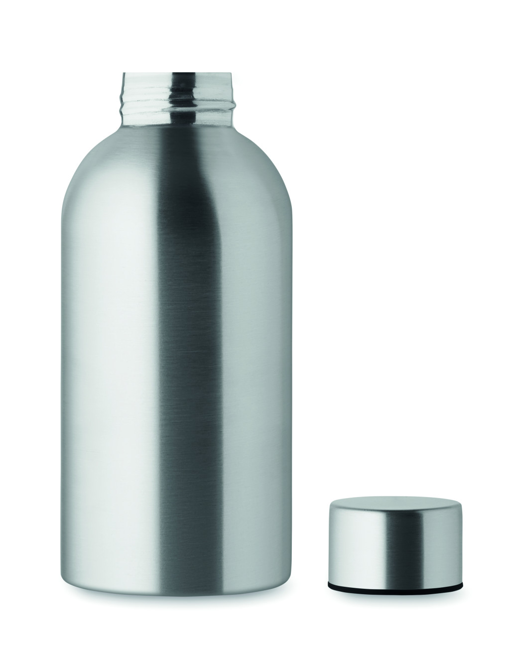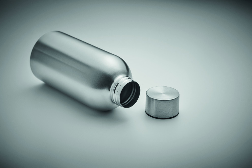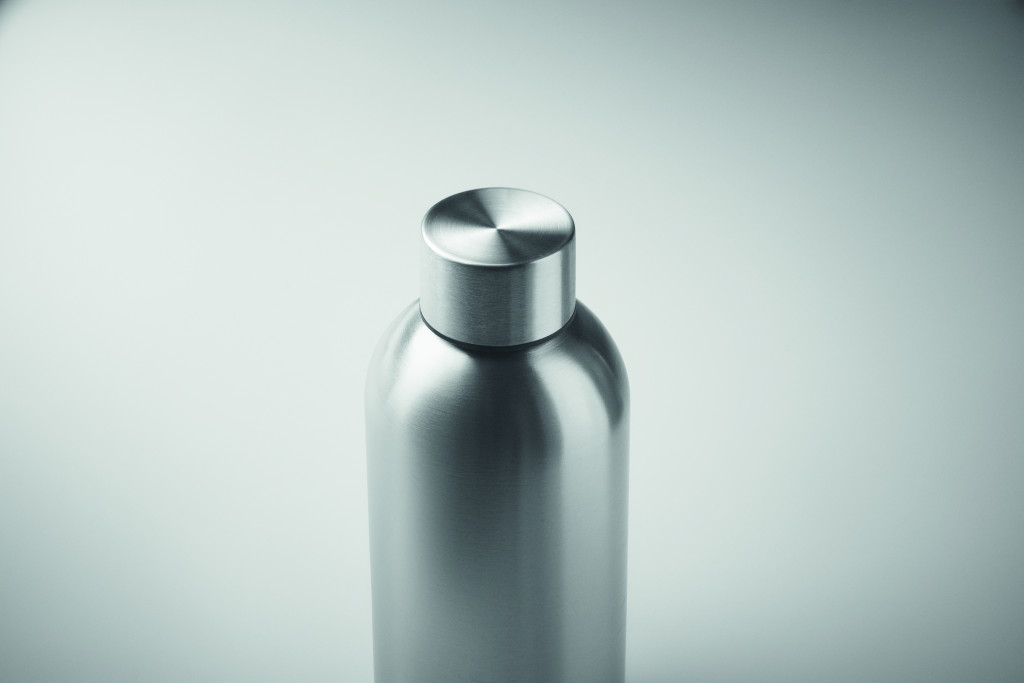 Szimplafalú palack újrahasznosított rozsdamentes acélból (90% újrahasznosított rozsdamentes acél és 10% rozsdamentes acél). Szivárgásmentes. Űrtartalom: 500 ml. Mivel ez egy szimplafalú bögre, hőátadás lehetséges.