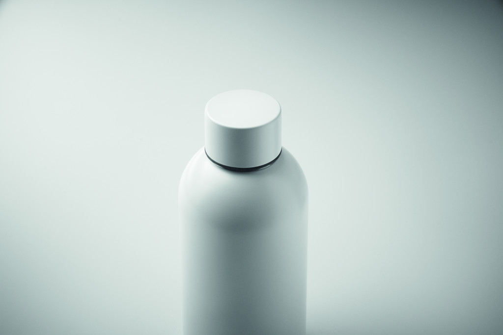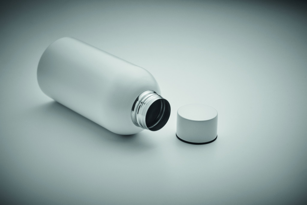 Szimplafalú palack újrahasznosított rozsdamentes acélból (90% újrahasznosított rozsdamentes acél és 10% rozsdamentes acél). Szivárgásmentes. Űrtartalom: 500 ml. Mivel ez egy szimplafalú bögre, hőátadás lehetséges.