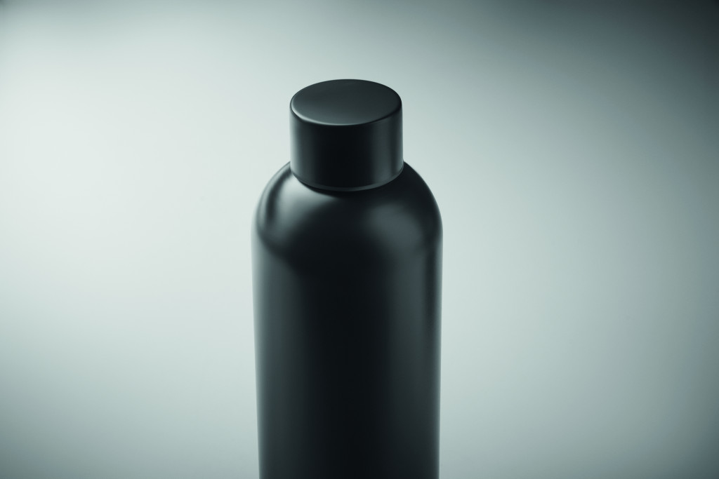 Szimplafalú palack újrahasznosított rozsdamentes acélból (90% újrahasznosított rozsdamentes acél és 10% rozsdamentes acél). Szivárgásmentes. Űrtartalom: 750 ml. Mivel ez egy szimplafalú bögre, hőátadás lehetséges.