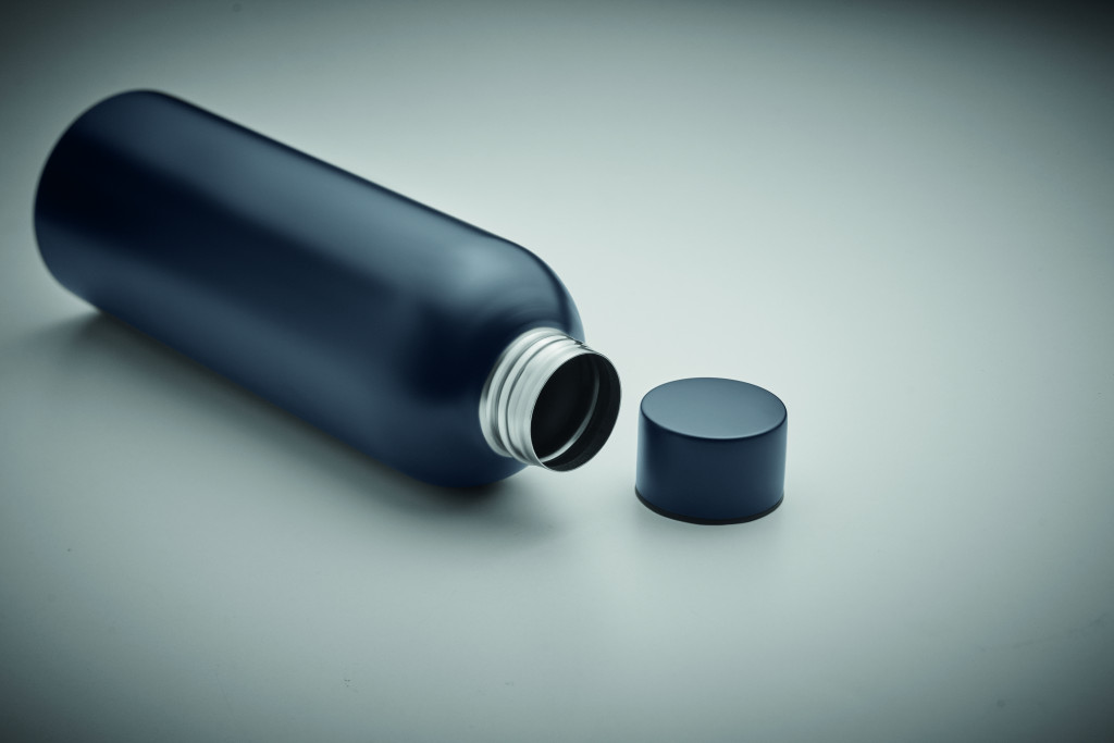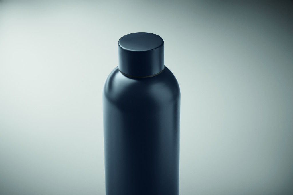 Szimplafalú palack újrahasznosított rozsdamentes acélból (90% újrahasznosított rozsdamentes acél és 10% rozsdamentes acél). Szivárgásmentes. Űrtartalom: 750 ml. Mivel ez egy szimplafalú bögre, hőátadás lehetséges.