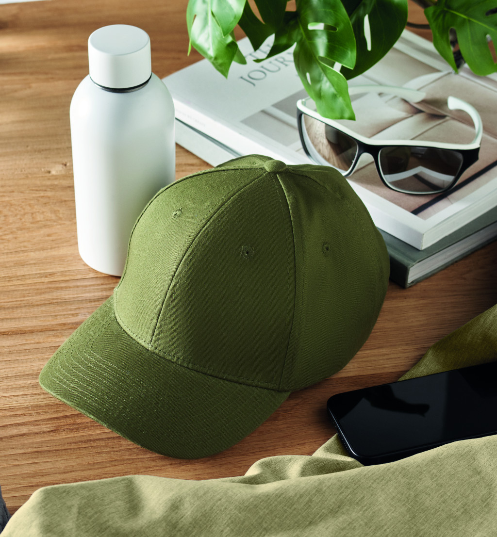 6 paneles baseball sapka 280 g/m² pamut twillből, állítható, acél csatos záródással. Mosható. Méret 7 1/4.