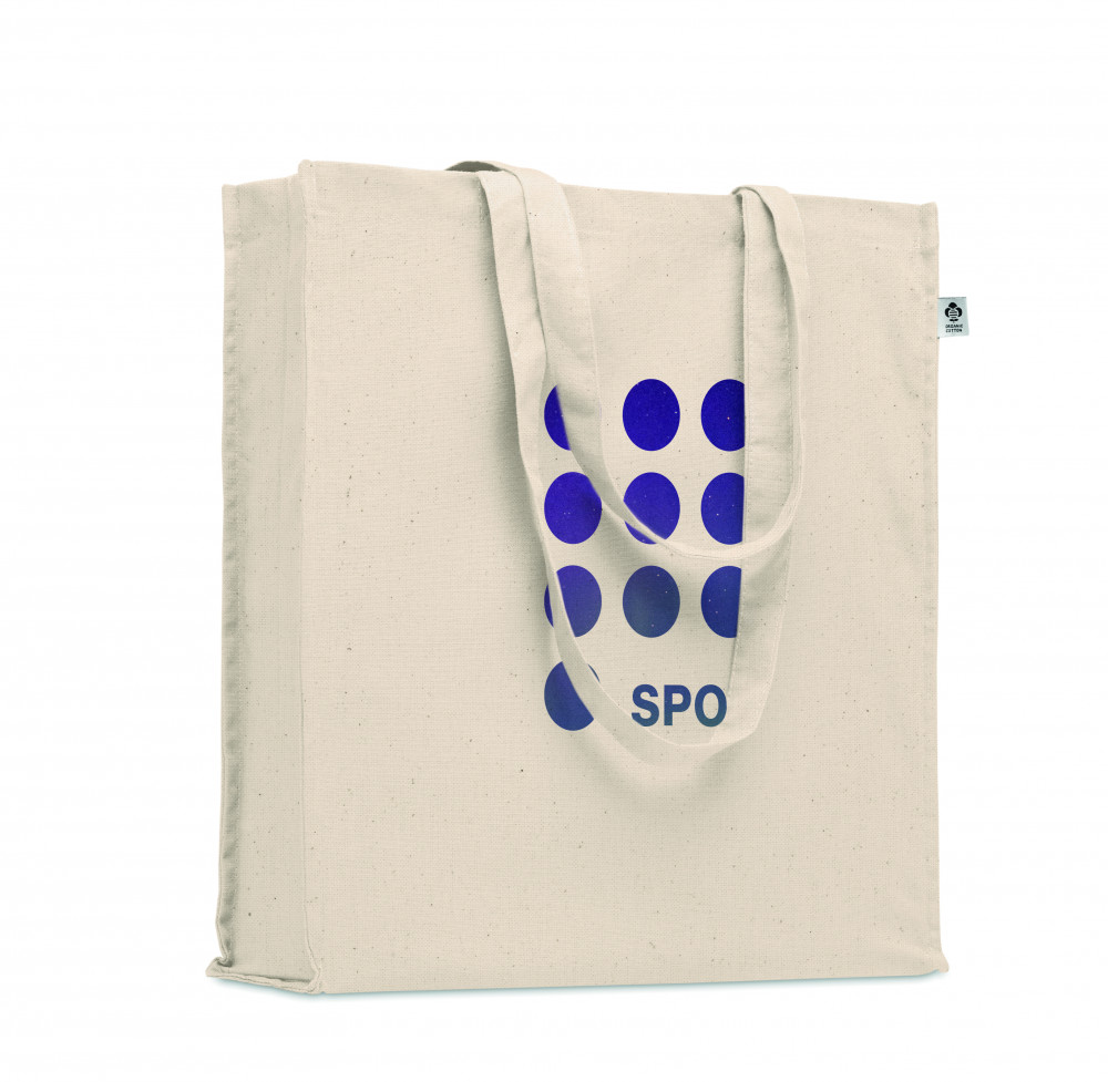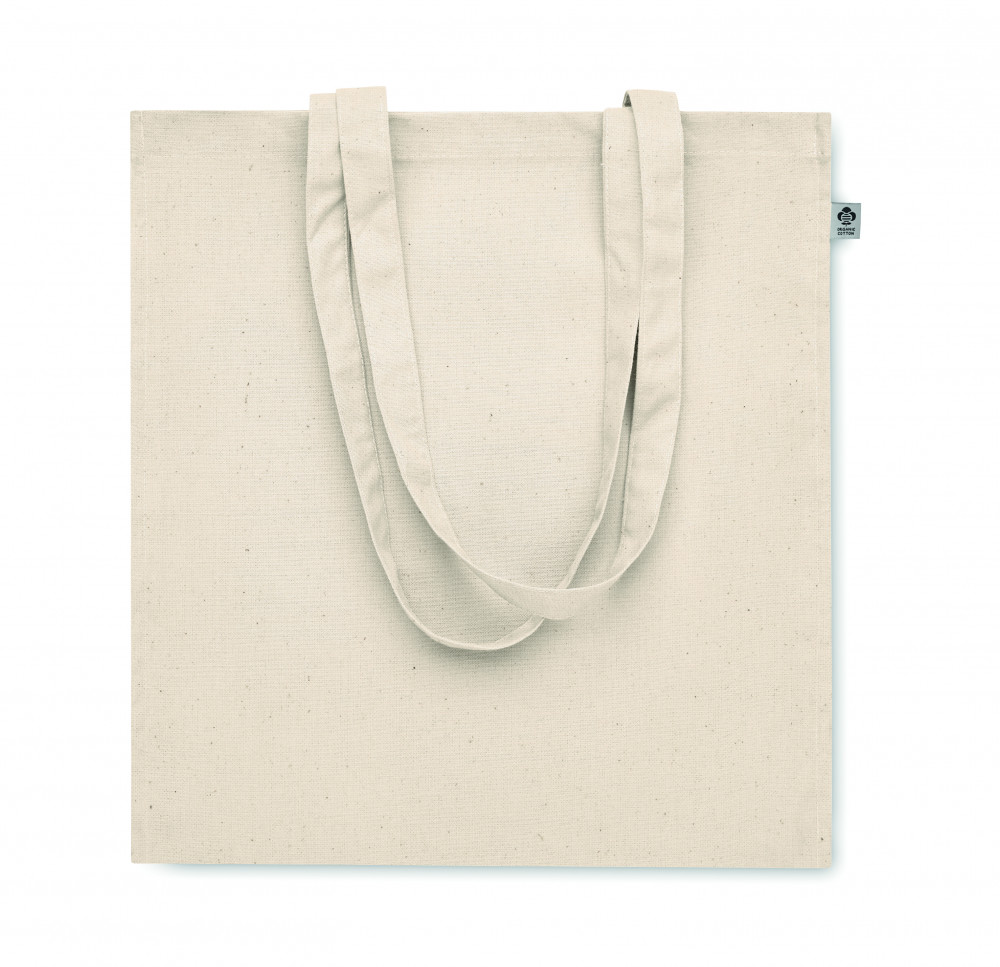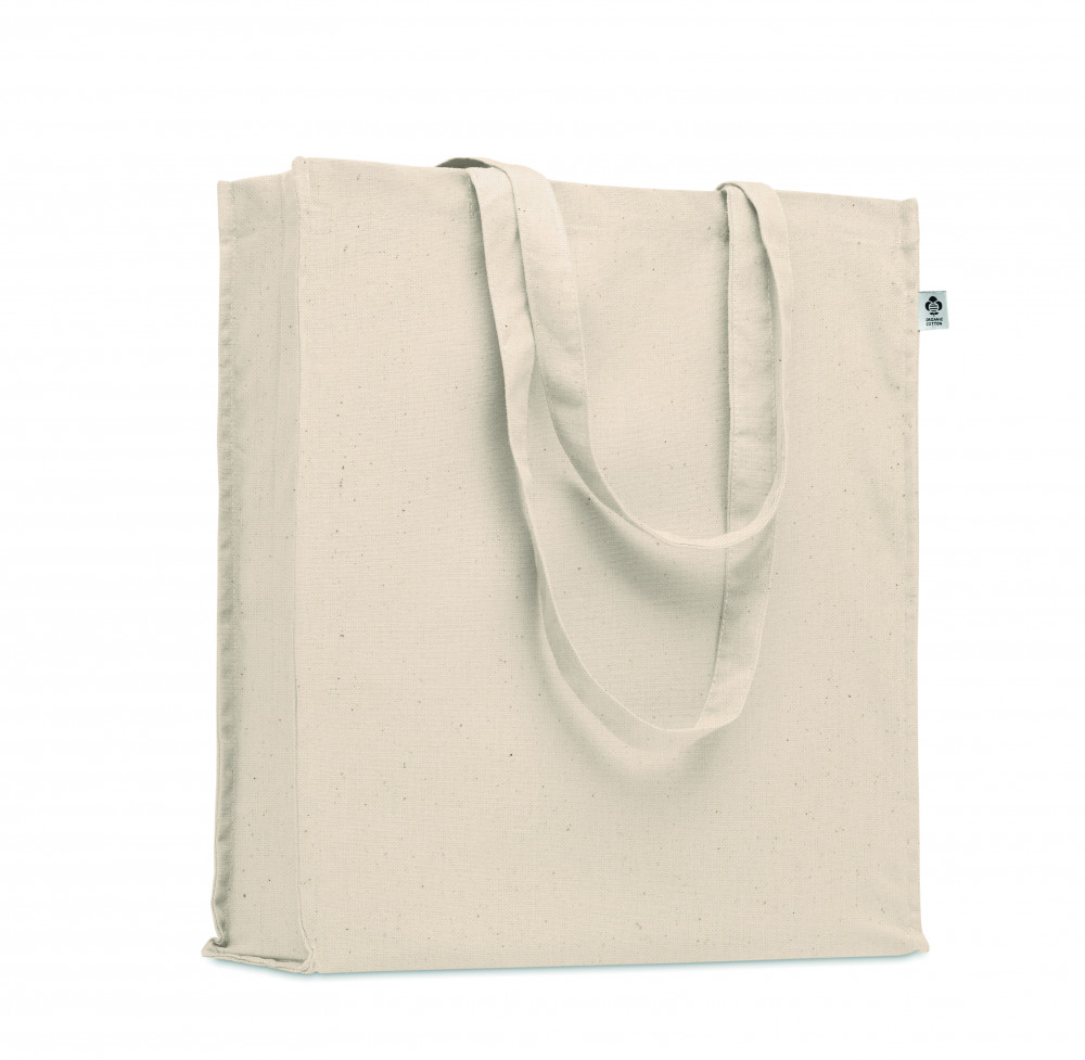 Biopamut bevásárlótáska hosszú fülekkel, toldással. 220 g/m² vastag anyag.