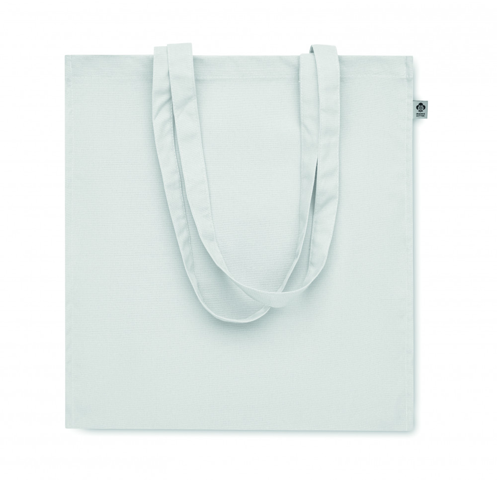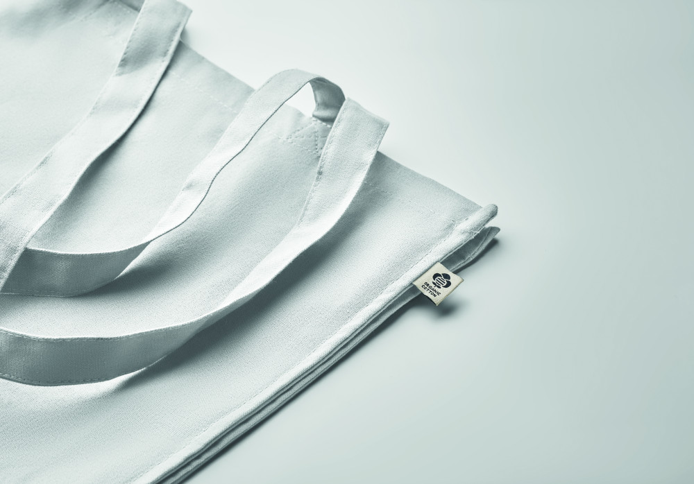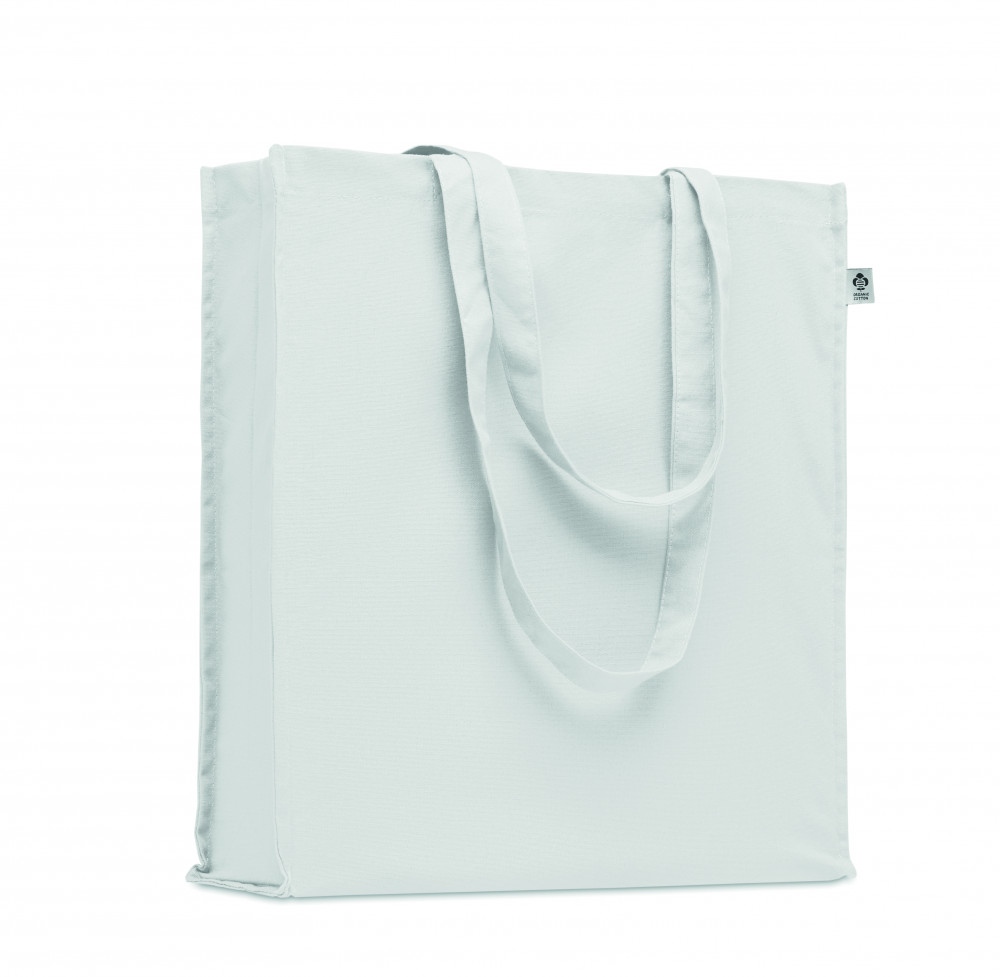 Biopamut bevásárlótáska hosszú fülekkel, toldással. 220 g/m² vastag anyag.