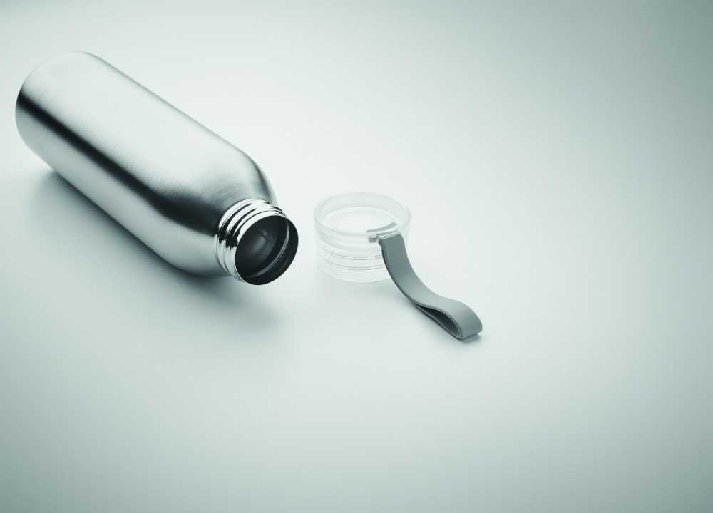 Szimplafalú rozsdamentes acél palack PP fedéllel és szilikon pánttal. Űrtartalom: 650 ml. Mivel ez egy szimplafalú bögre, hőátadás lehetséges.