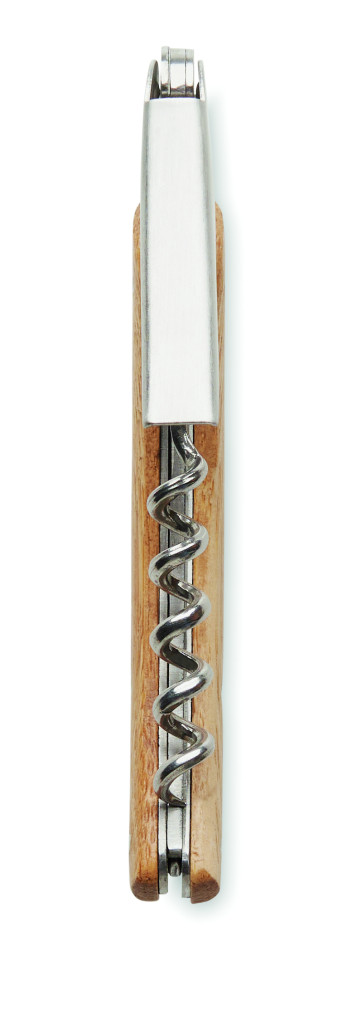 Rozsdamentes acélból készült kétlépcsős pincér dugóhúzó üvegnyitóval, bambusz markolattal.