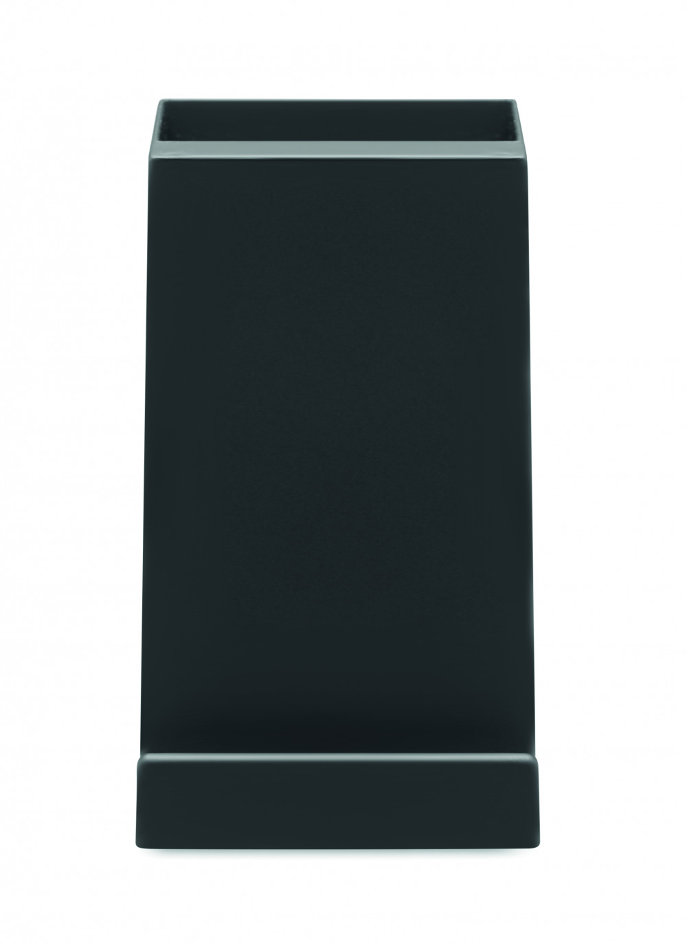 15W-os duplatekercses vezeték nélküli töltő tolltartóval ABS műanyagból. Teljesítmény: DC 9V/1.67A (15W) a gyors töltéshez. 1 USB-A portos áramkimenet.