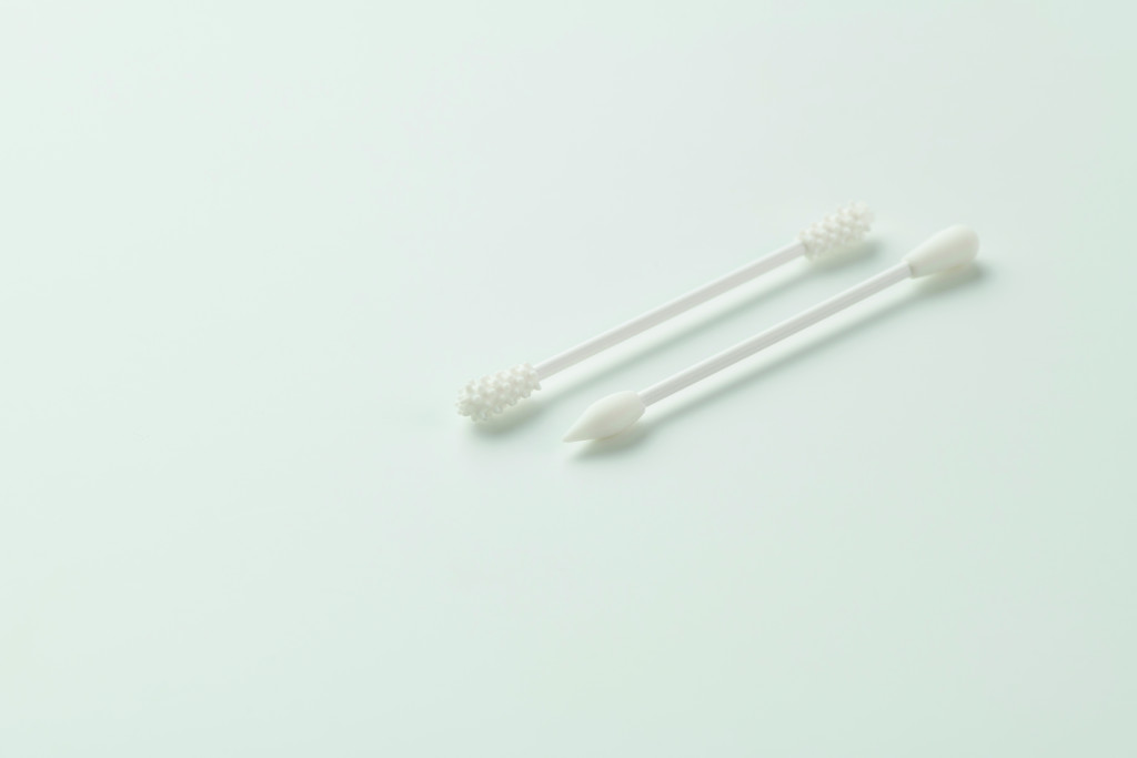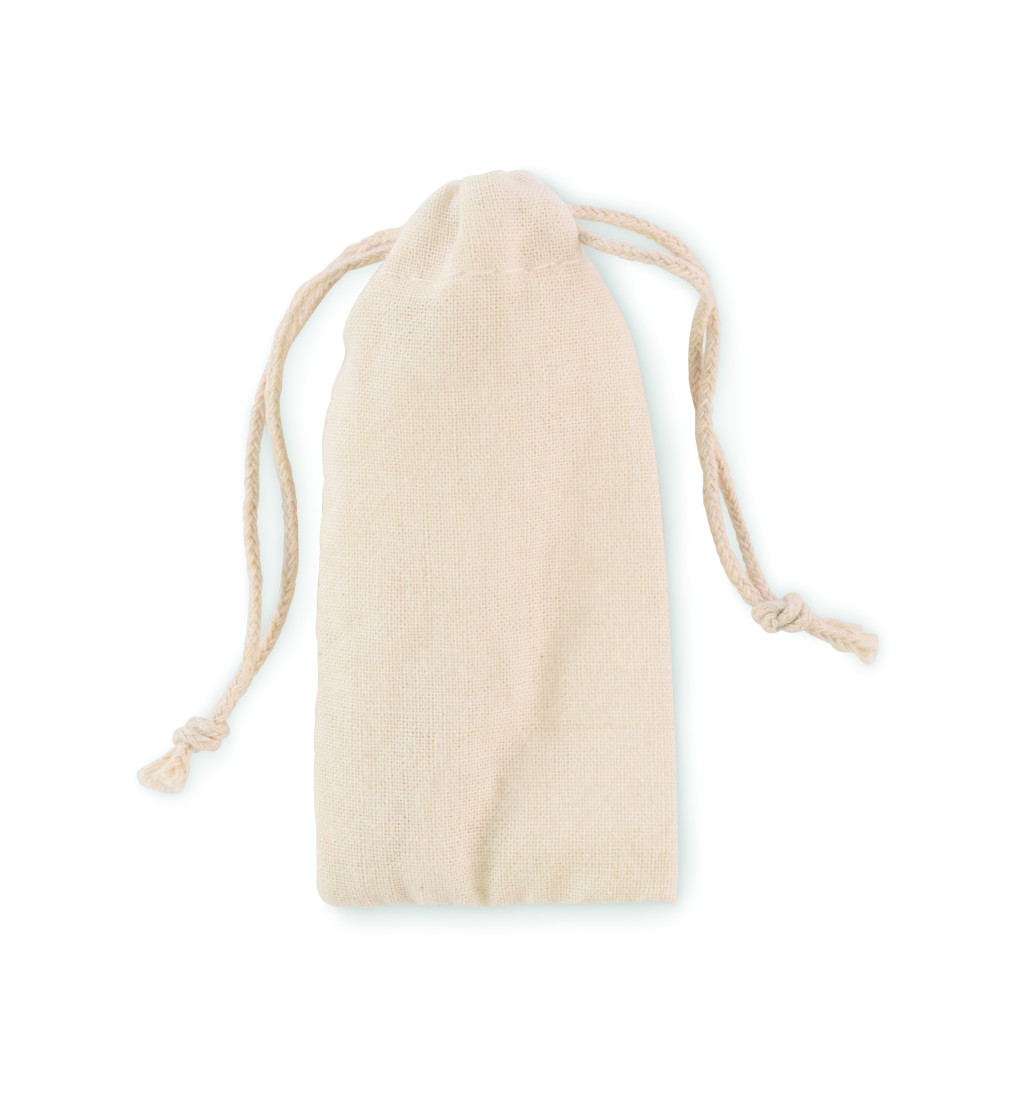 2 darab újrafelhasználható és mosható szilikon fültisztító pálcika 3 különböző fejjel. Húzózsinóros pamut tasakban.