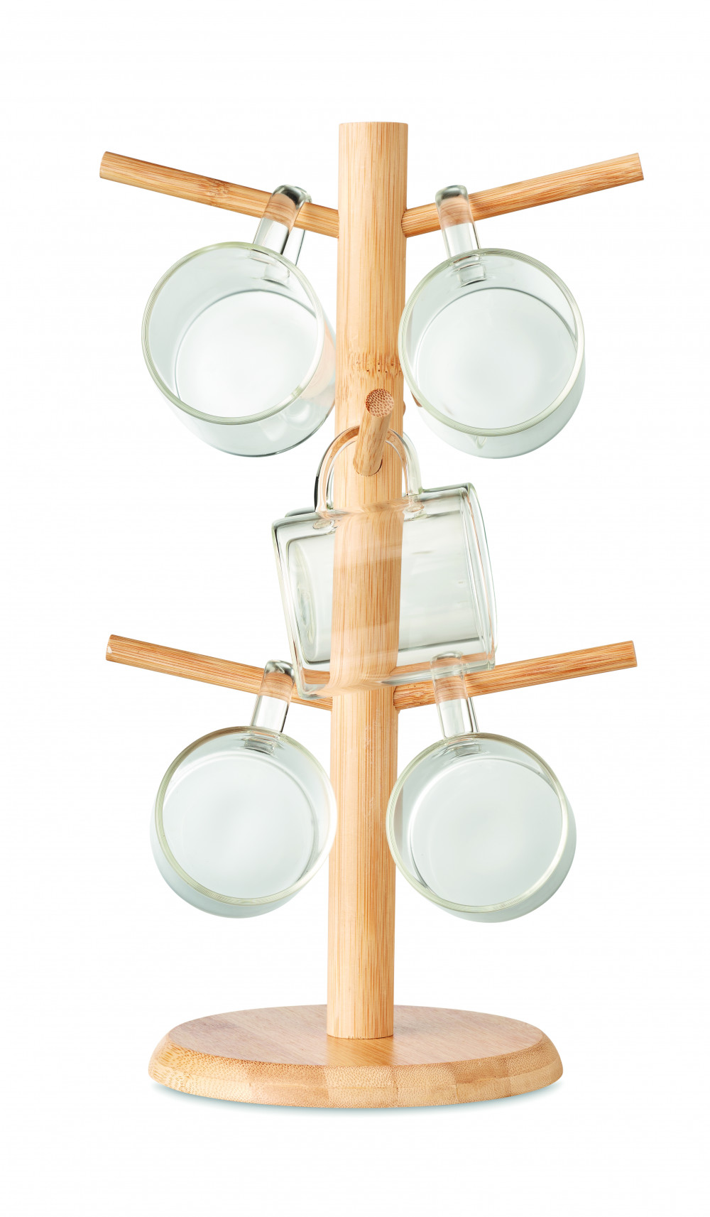 BOROCUPS Bögrekészlet bambusz tartóval, fa