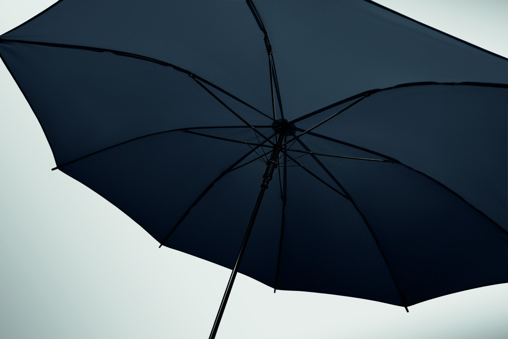 23 colos, egyenes, automatikusan nyíló esernyő fekete fém rúddal, üvegszálas bordákkal és 190T nyersselyem pongee anyagból készült panelekkel. Műanyag cikkelyzáró elemek és csúcs. Gumírozott, PP műanyag hajlított markolat. Kézi záródás.