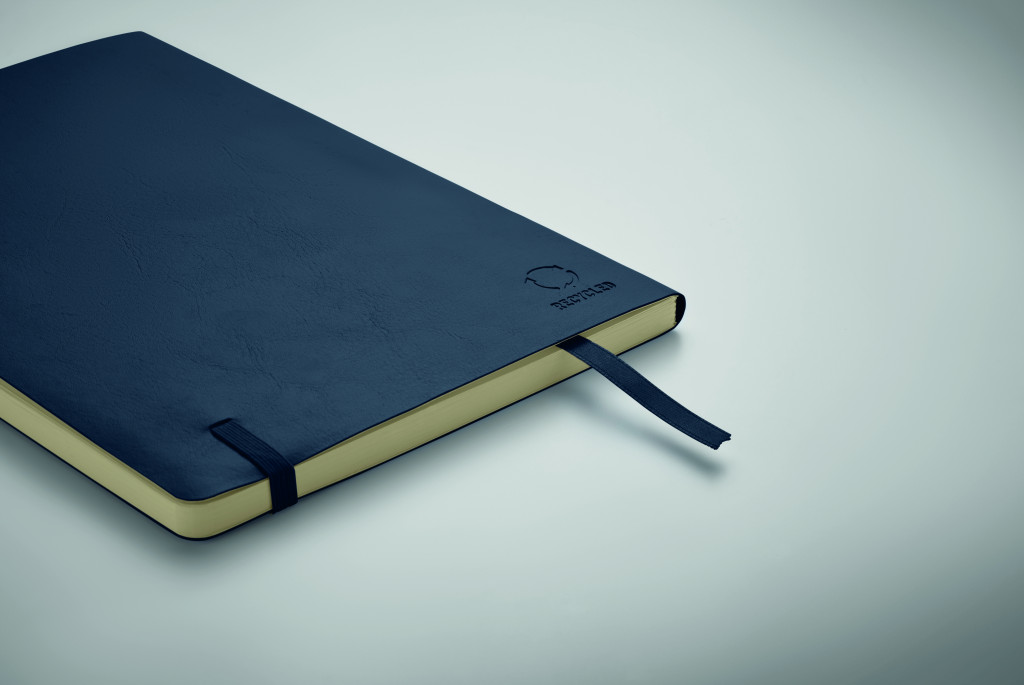 A5 jegyzetfüzet puha, újrahasznosított PU borítóval (81% újrahasznosított poliészter és 19% PU). Cérnafűzött. 160 vonalas, újrahasznosított papír oldal (80 lap). Illeszkedő színű elasztikus zárópánt és könyvjelző szalag. Irattartó zseb a hátsó borító belső oldalán. FSC®-certified | FSC MIX CREDIT, P7.1, FSC-C213206