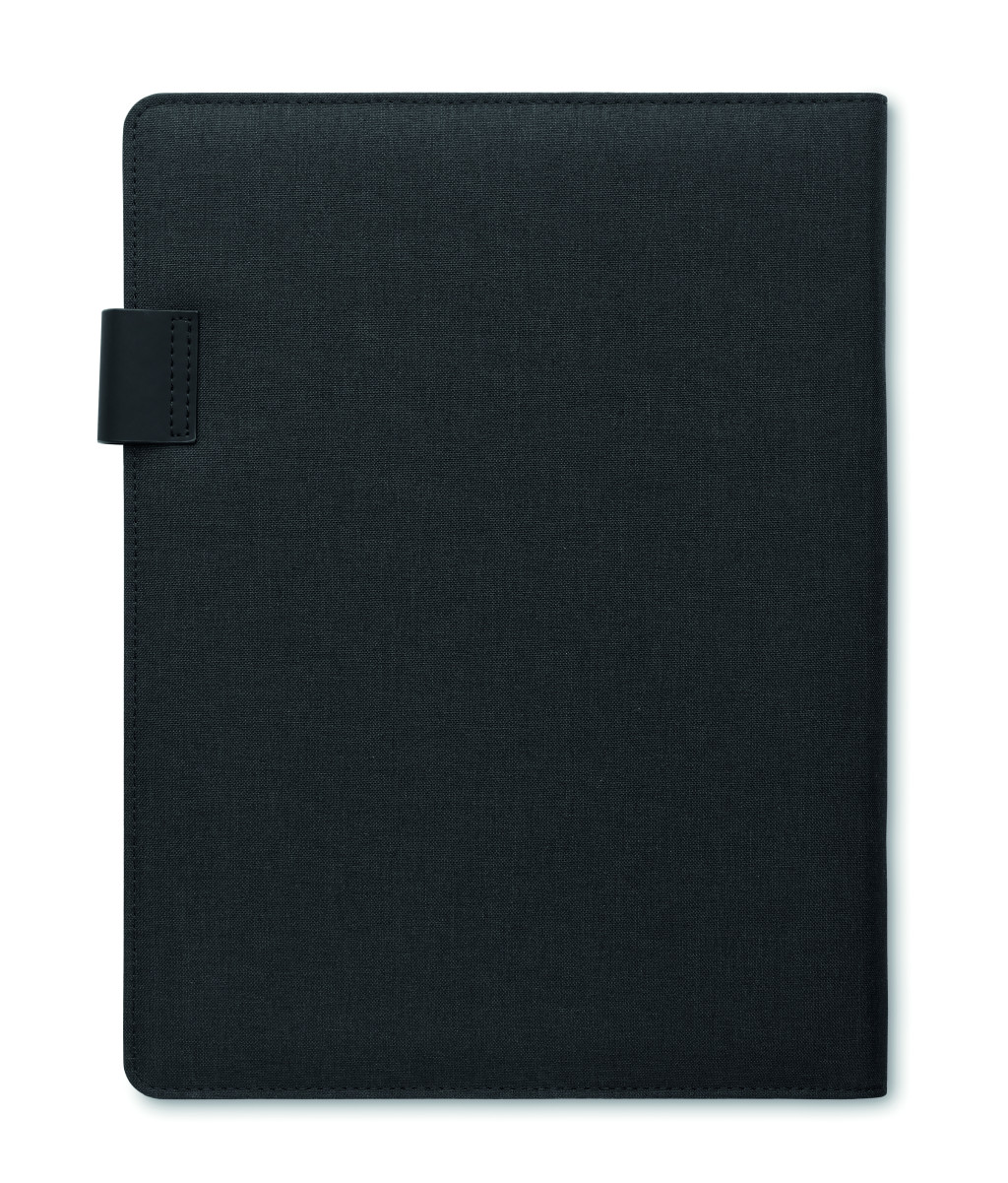 A4 iratmappa vászon-PU borítóval. 5000 mAh powerbank külső akkumulátor és 15 W mágneses vezeték nélküli töltő. 20 vonalas lapos jegyzettömb. Több belső rekesz. Mágneses záródás. Elasztikus tolltartó hurok.