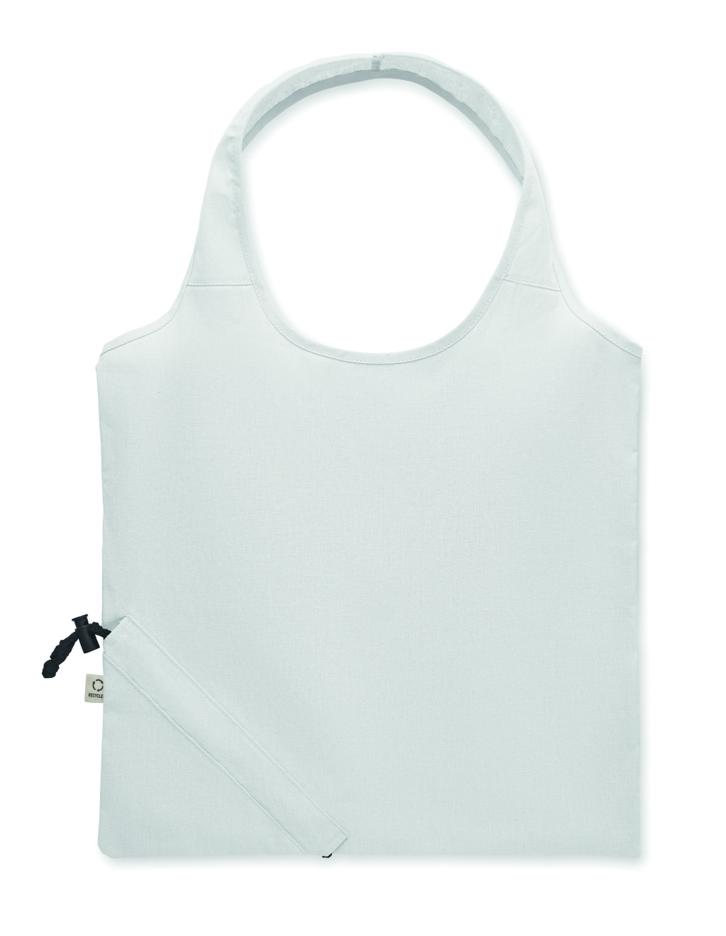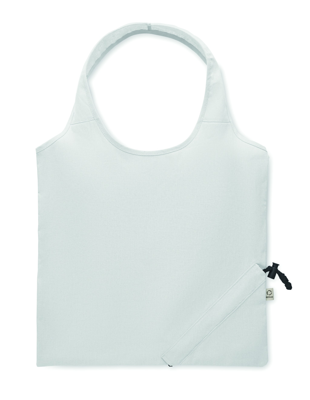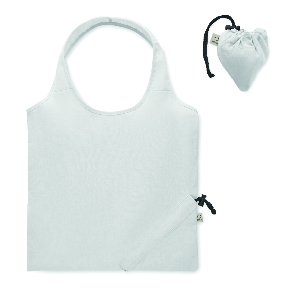 Fogyasztás előtti újrahasznosított pamut, összehajtható bevásárlótáska (70% újrahasznosított pamut és 30% RPET). 140 g/m². Ez az anyag nyomtatás után zsugorodhat.