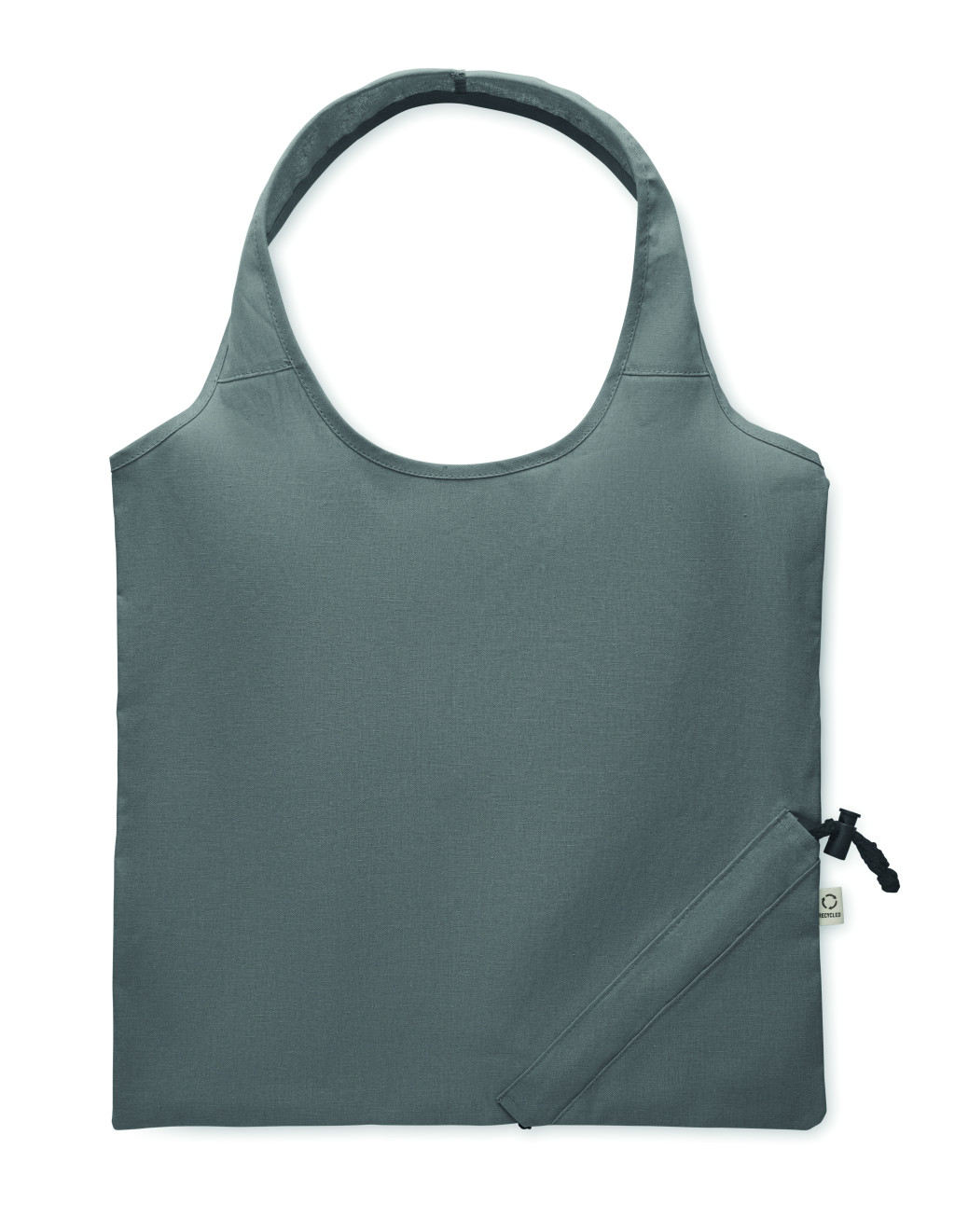 Fogyasztás előtti újrahasznosított pamut, összehajtható bevásárlótáska (70% újrahasznosított pamut és 30% RPET). 140 g/m². Ez az anyag nyomtatás után zsugorodhat.