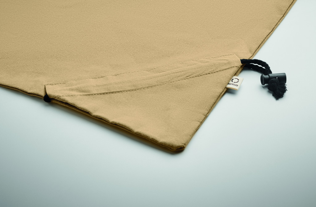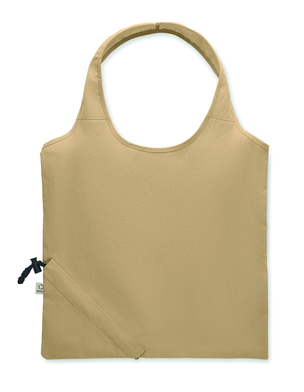 Fogyasztás előtti újrahasznosított pamut, összehajtható bevásárlótáska (70% újrahasznosított pamut és 30% RPET). 140 g/m². Ez az anyag nyomtatás után zsugorodhat.