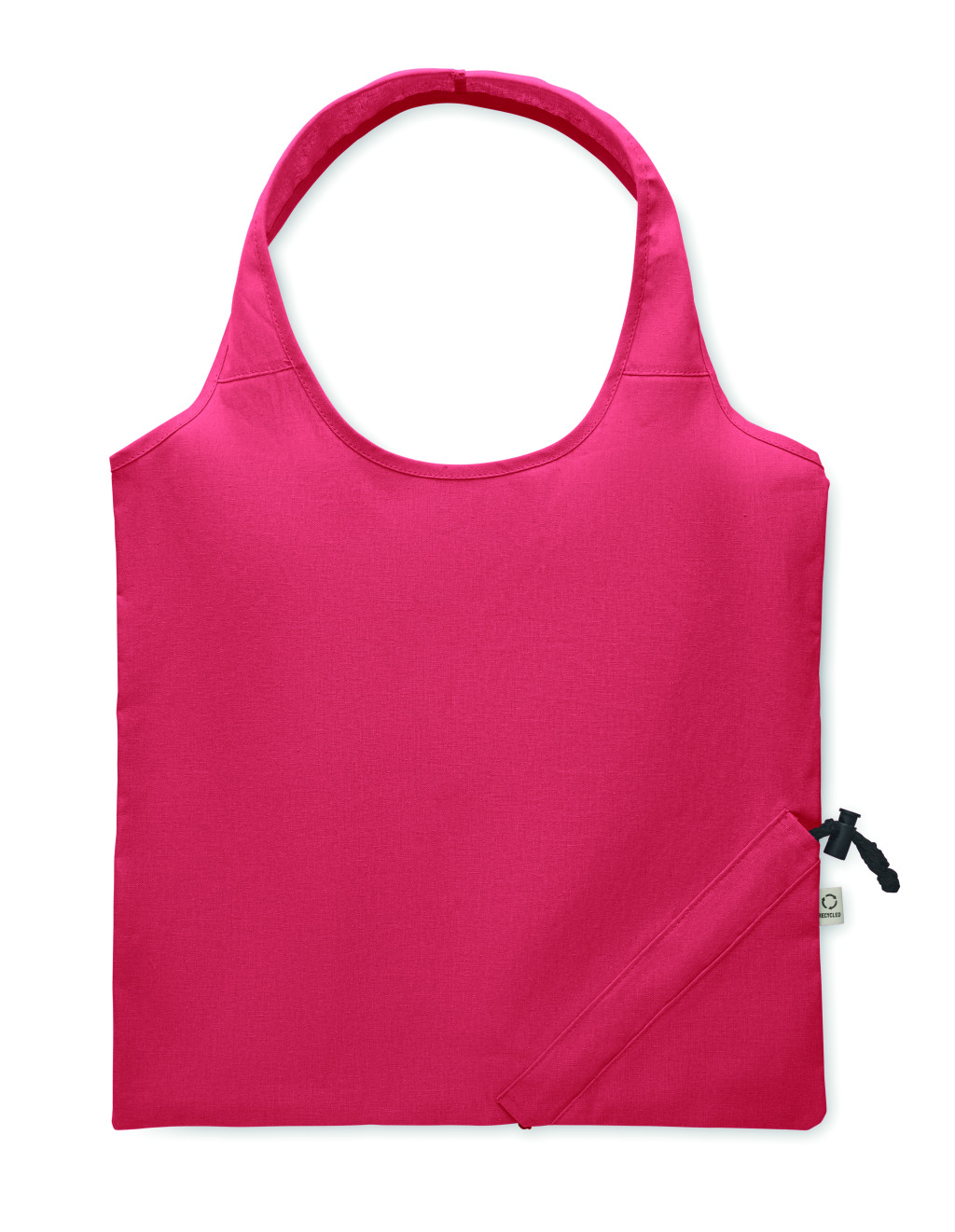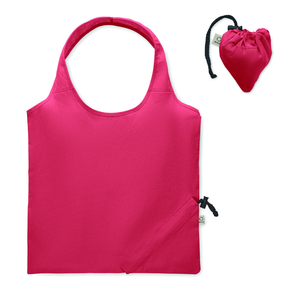 Fogyasztás előtti újrahasznosított pamut, összehajtható bevásárlótáska (70% újrahasznosított pamut és 30% RPET). 140 g/m². Ez az anyag nyomtatás után zsugorodhat.