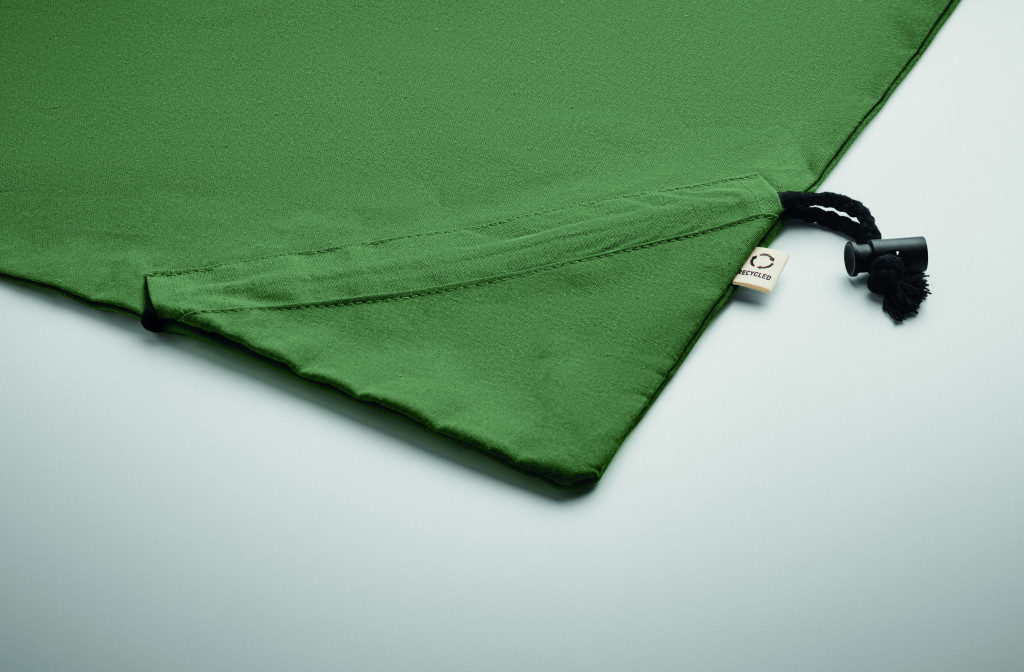 Fogyasztás előtti újrahasznosított pamut, összehajtható bevásárlótáska (70% újrahasznosított pamut és 30% RPET). 140 g/m². Ez az anyag nyomtatás után zsugorodhat.