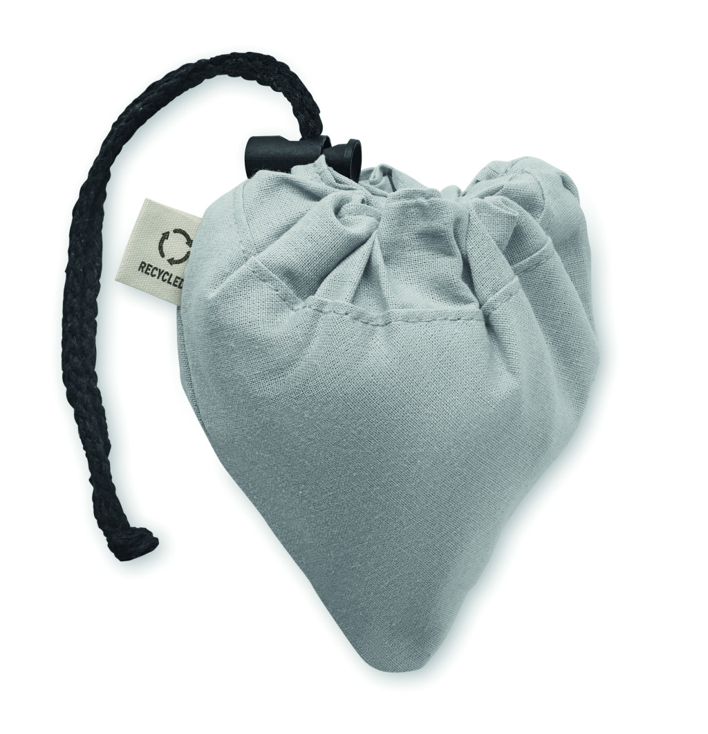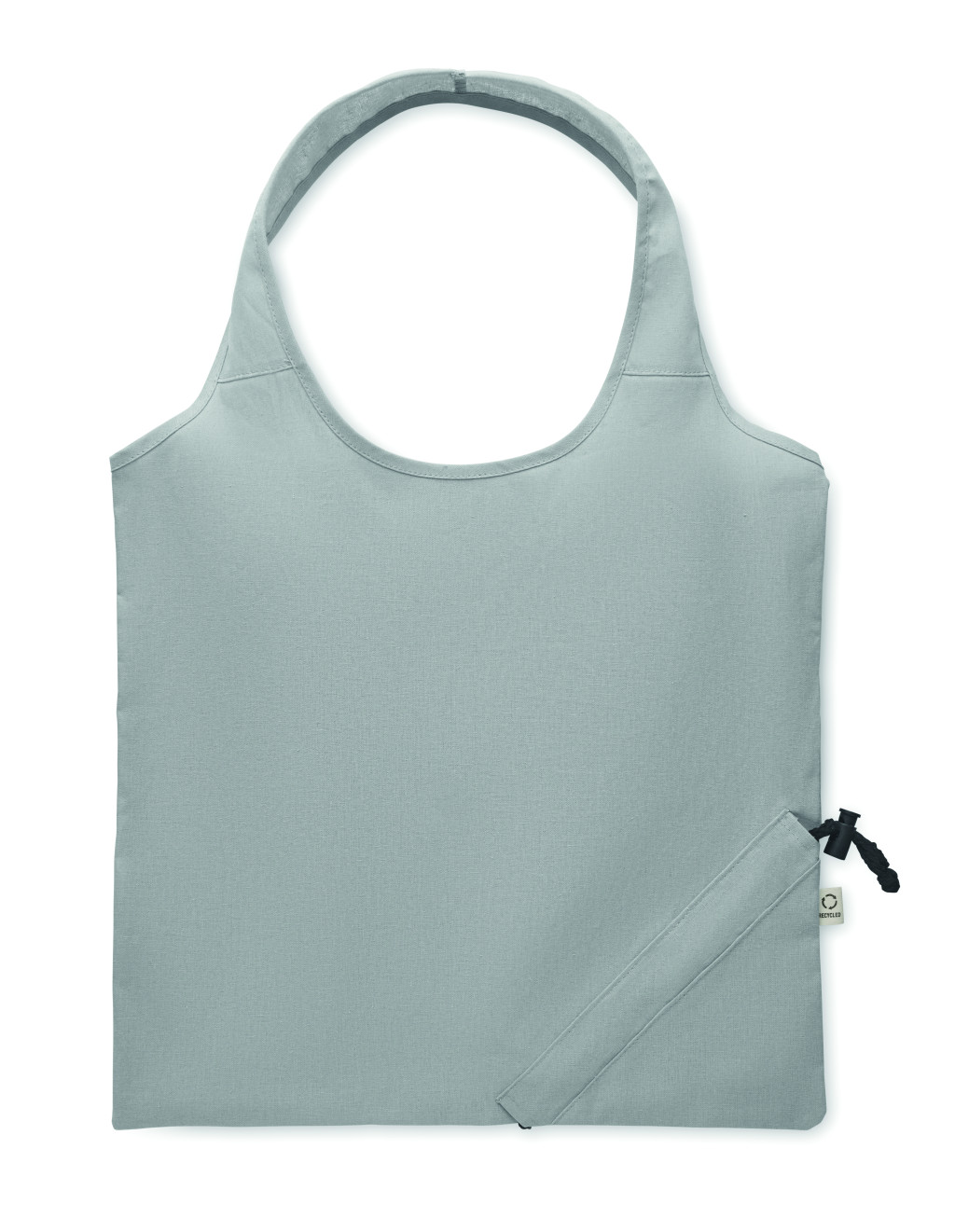 Fogyasztás előtti újrahasznosított pamut, összehajtható bevásárlótáska (70% újrahasznosított pamut és 30% RPET). 140 g/m². Ez az anyag nyomtatás után zsugorodhat.