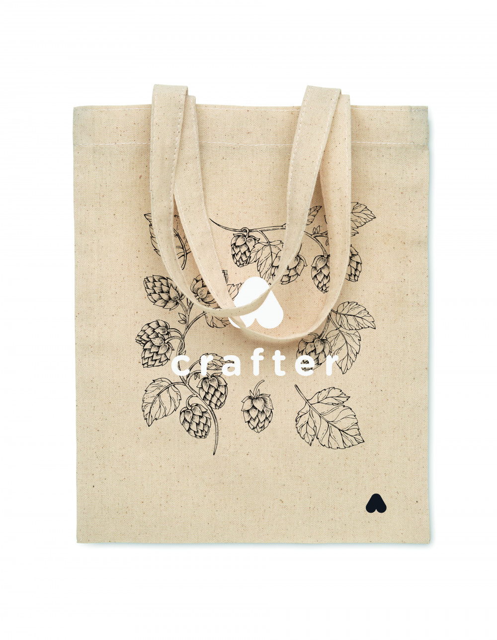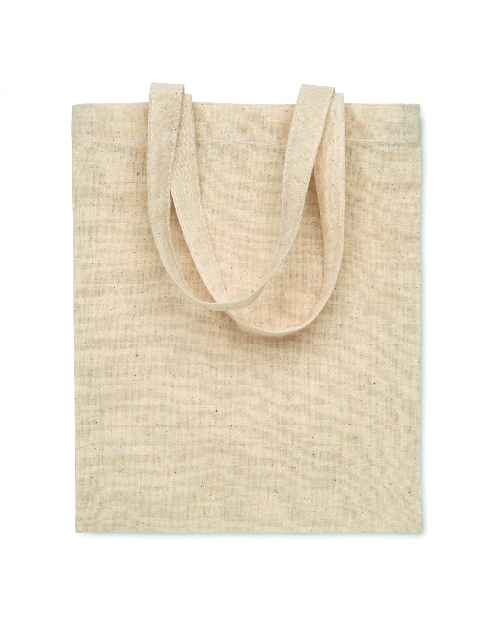 Kis pamut ajándéktasak rövid fülekkel. 140 g/m² vastag anyag. Ez a termék OEKO-TEX® STANDARD 100 tanúsítvánnyal rendelkezik.