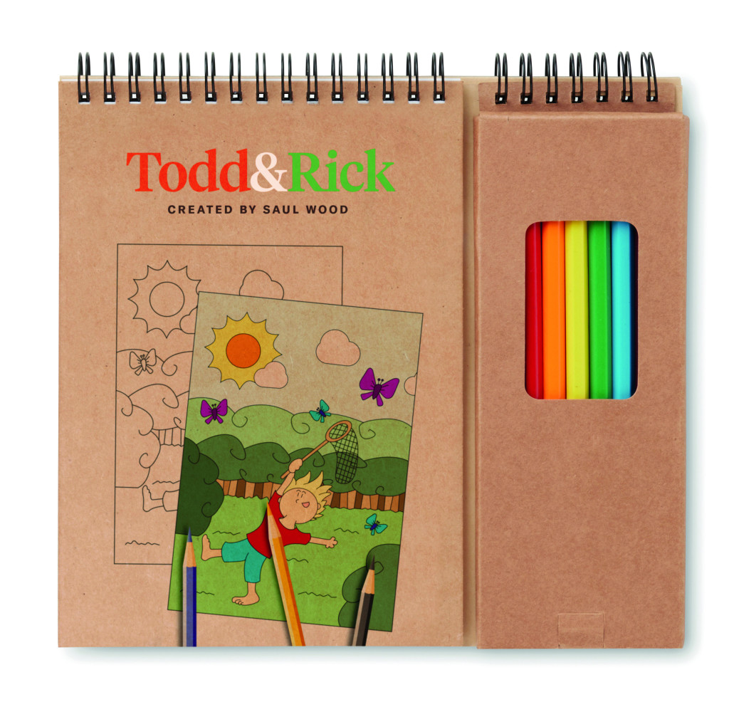 24 oldalas kifestő könyv. 6 előre nyomtatott kiszínező oldal és 18 üres oldal. 8 színes ceruzával.