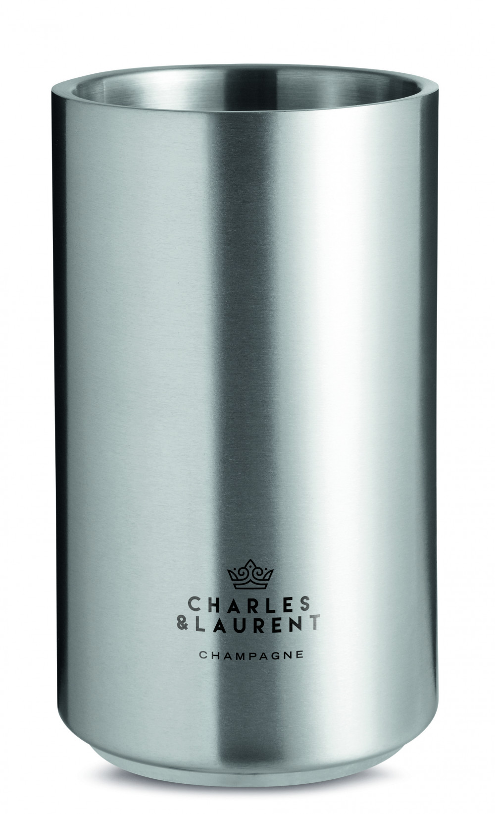 Duplafalú, henger alakú rozsdamentes acél palackhűtő.