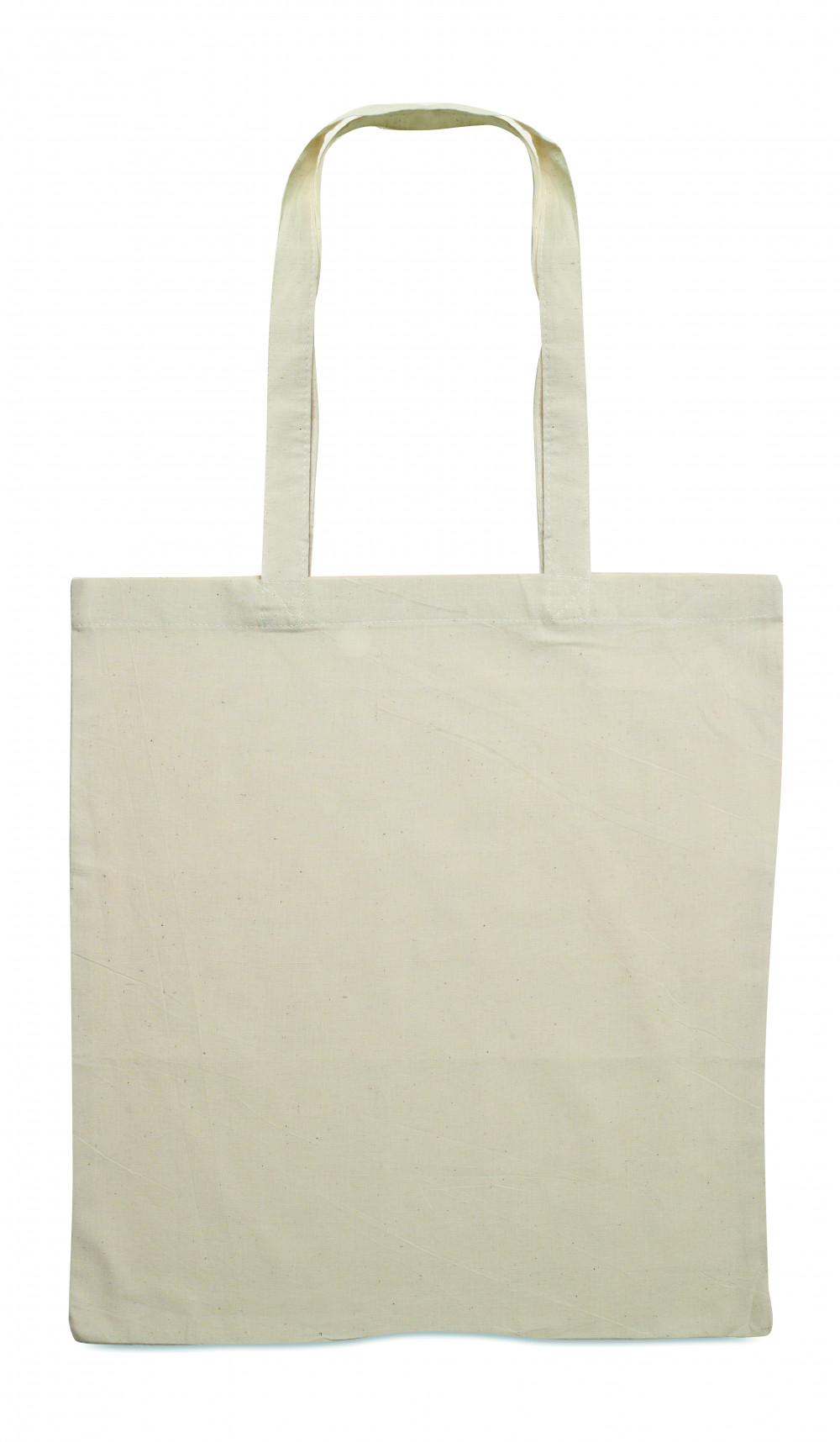 Pamut bevásárlótáska hosszú füllel. 140 g vastag anyag. Ez a termék OEKO-TEX® STANDARD 100 tanúsítvánnyal rendelkezik.
