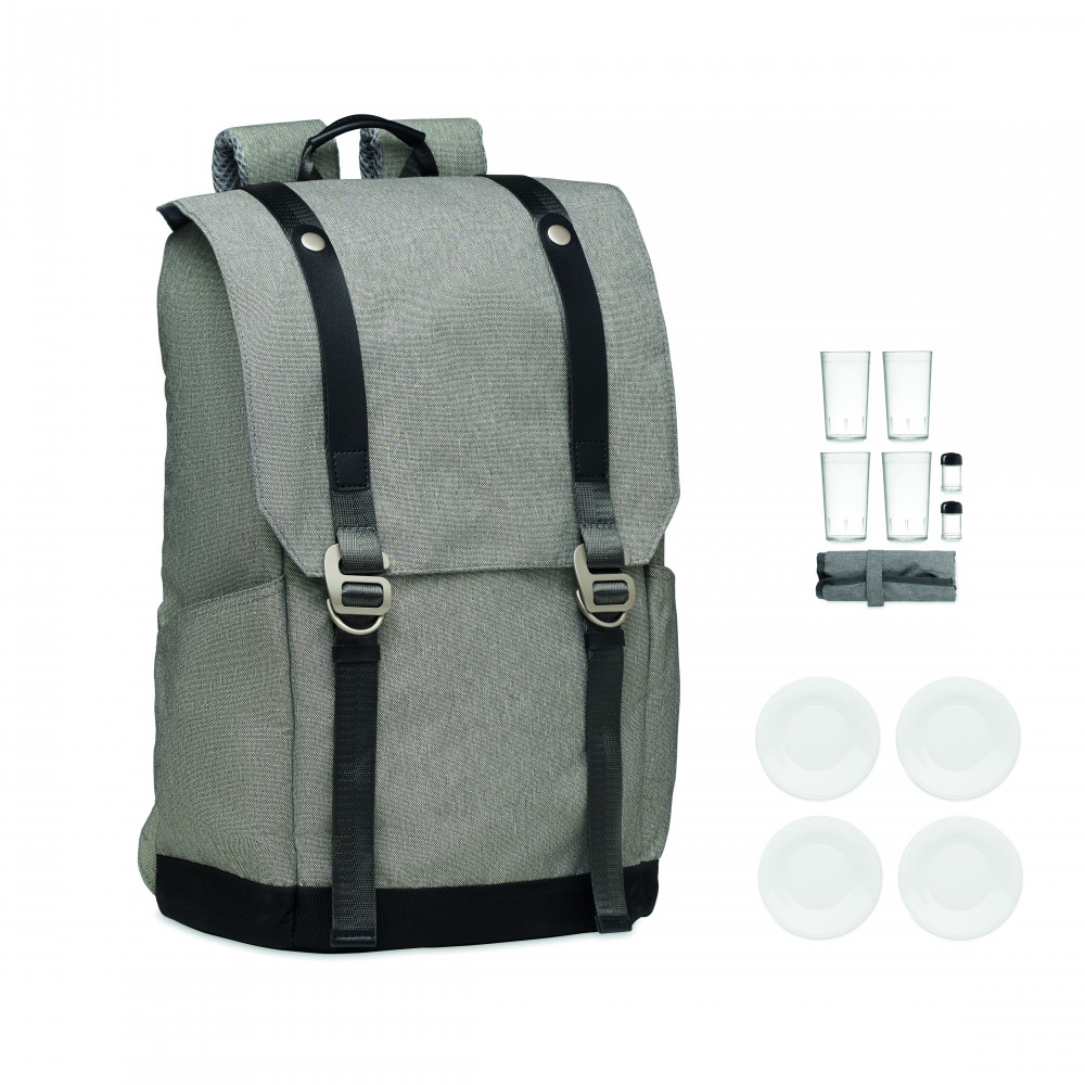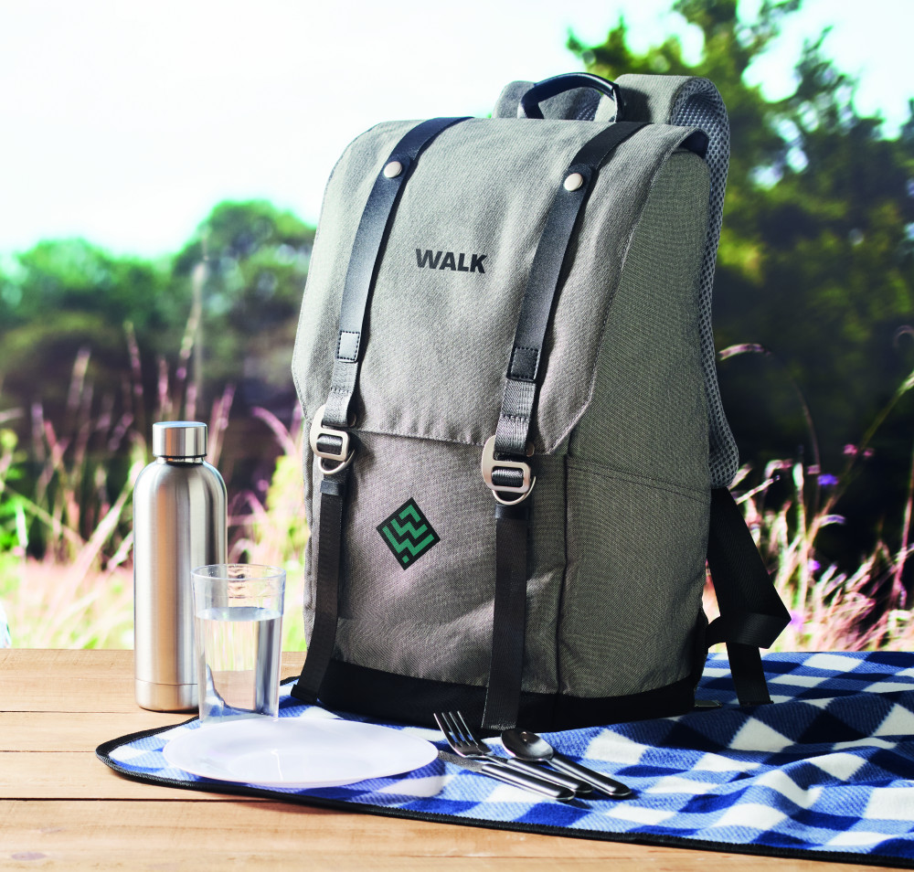 4 személyes piknik hátizsák, hidegen tartó alsó rekesszel, kiváló minőségű evőeszközökkel és 1 pincérkéssel. A táska kationikusan festett poliészterből készült.A parafa 100%-ban természetes anyag. Szerkezeti jellege és felületi porozitása miatt az egyes tárgyak végső emblémázási eredménye eltéréseket mutathat.
