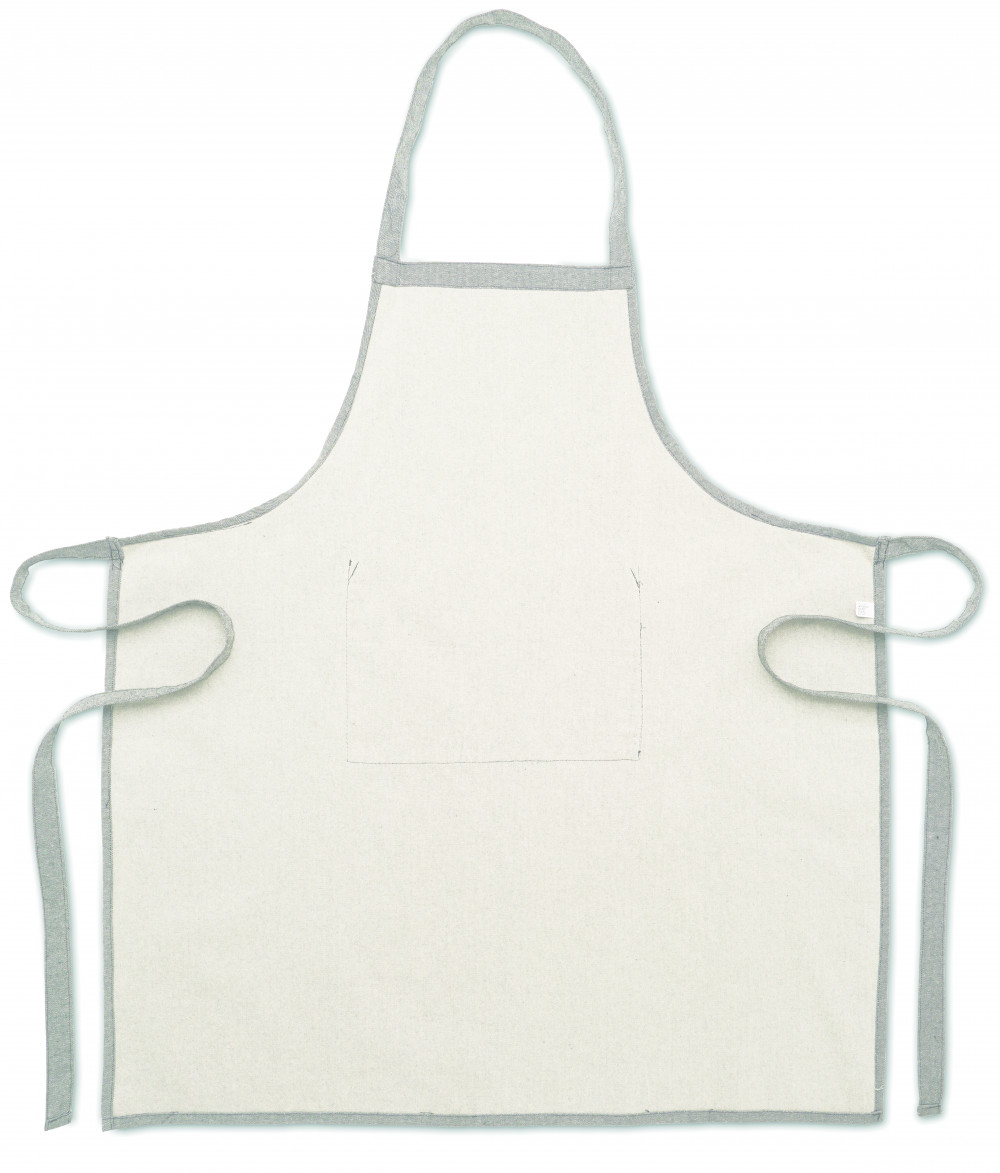 Állítható konyhai teljes kötény 1 elülső zsebbel, 220 g/m² vastag újrahasznosított pamutból. 80% újrahasznosított pamut, 20% hagyományos pamut