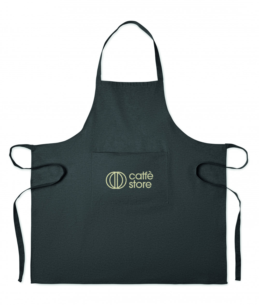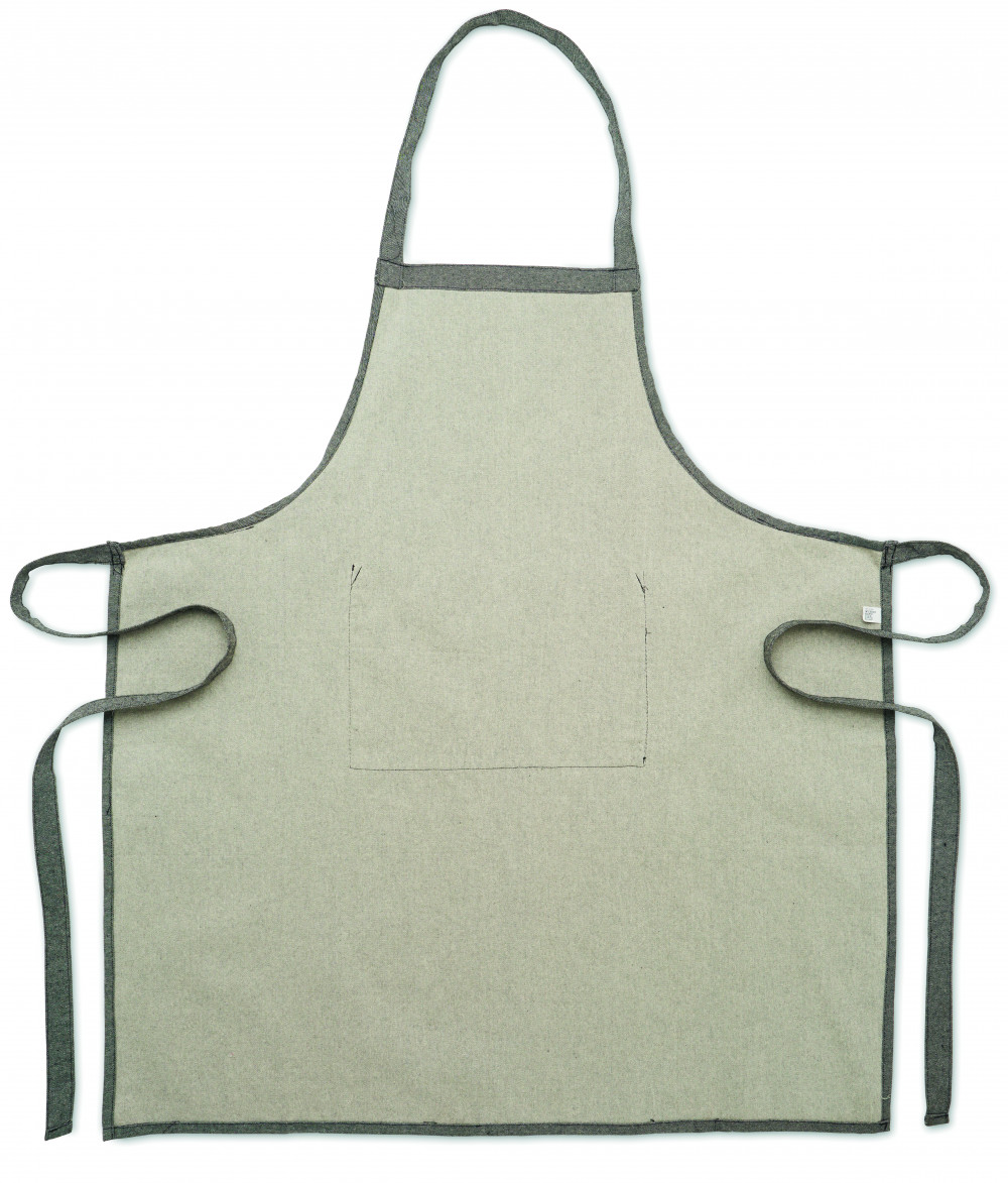 Állítható konyhai teljes kötény 1 elülső zsebbel, 220 g/m² vastag újrahasznosított pamutból. 80% újrahasznosított pamut, 20% hagyományos pamut