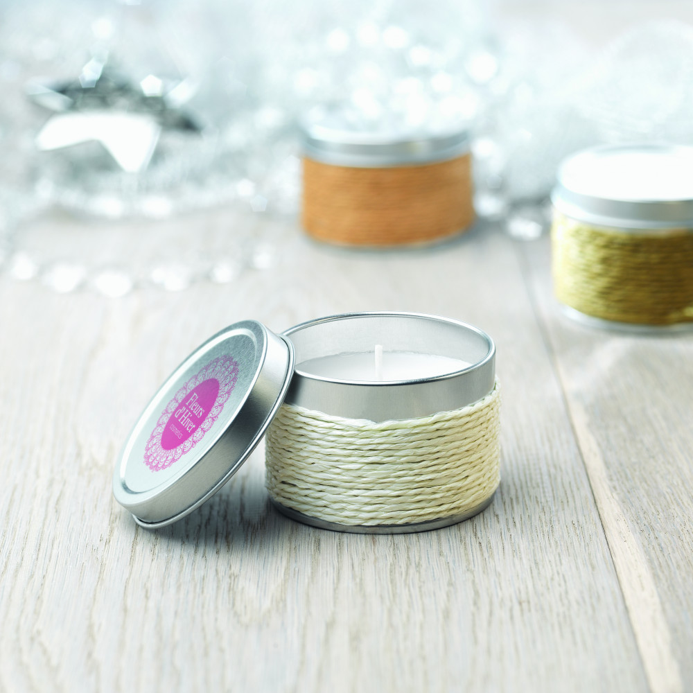 Illatgyertya 60gr dekoratív bádogdobozban.