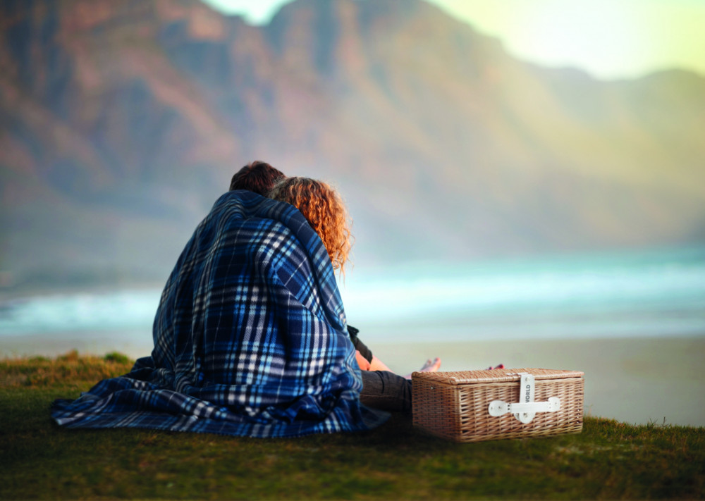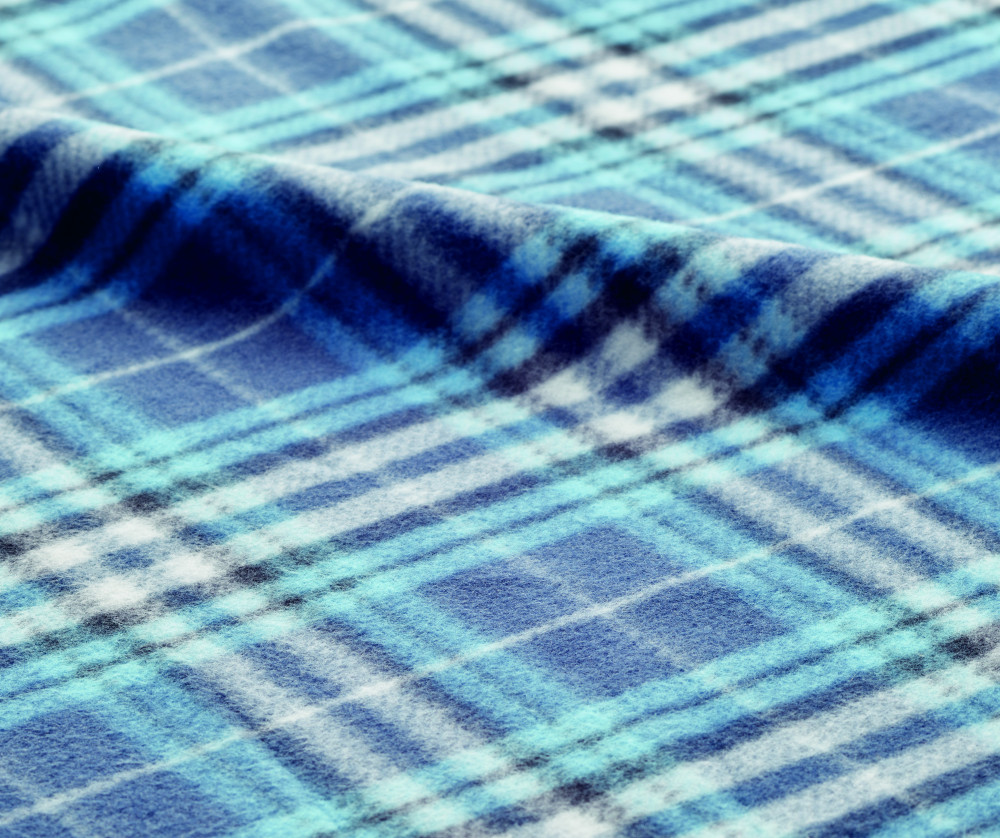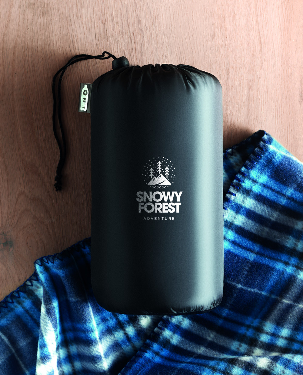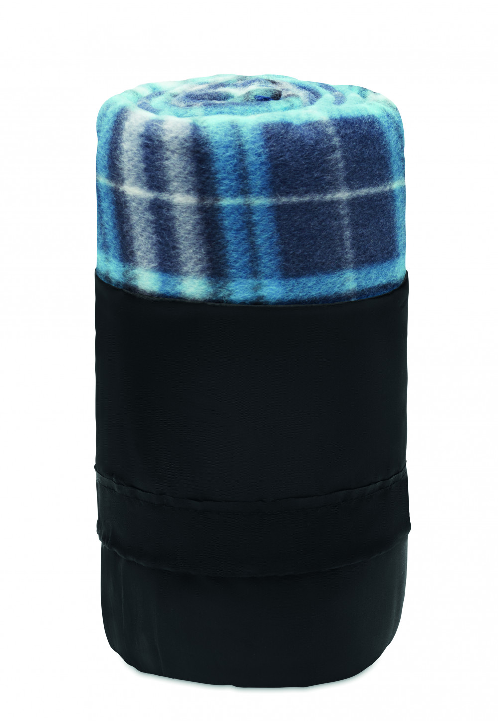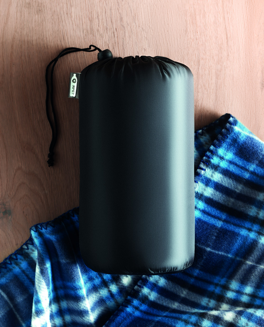 Kockás mintás RPET polár takaró, RPET poliészter tárolózsákban. 180 g vastag anyag.