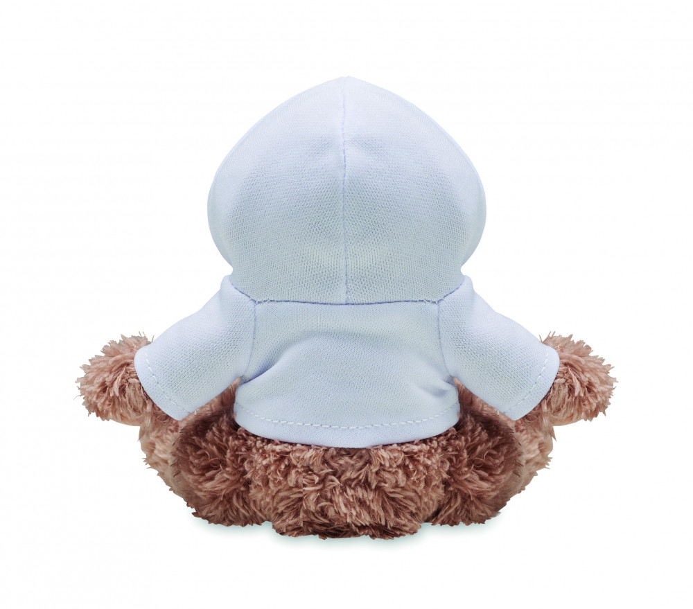 Kapucnis pulóvert viselő plüss kutya. A pulóver ideális szublimációs nyomtatáshoz.