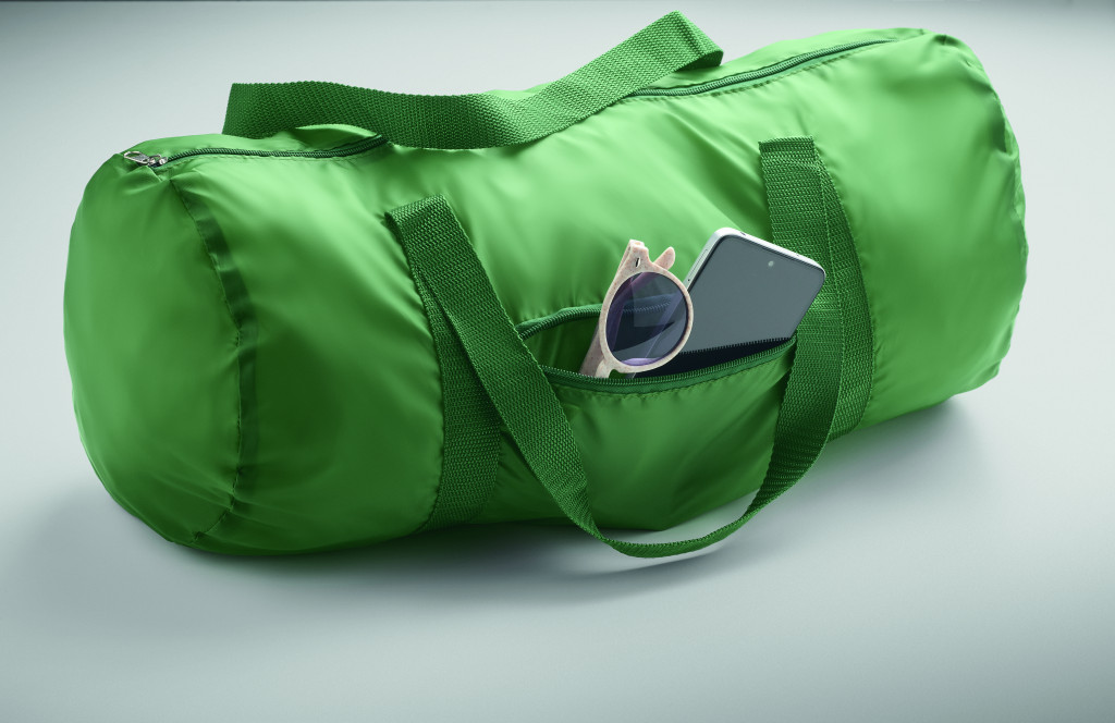 190T RPET poliészterből készült sport- vagy utazótáska cipzáras zsebbel az elülső oldalán. Kapacitás: 20 l.