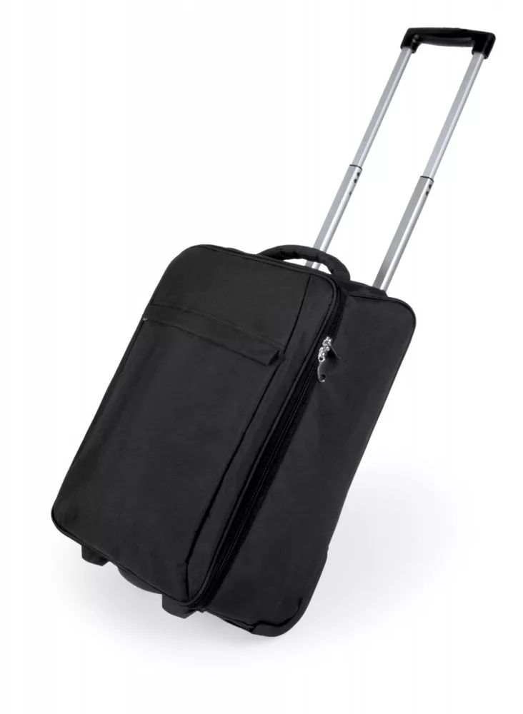 Összecsukható gurulós táska cipzáras zsebbel és kihúzható fogantyúval, 300D poliészter.