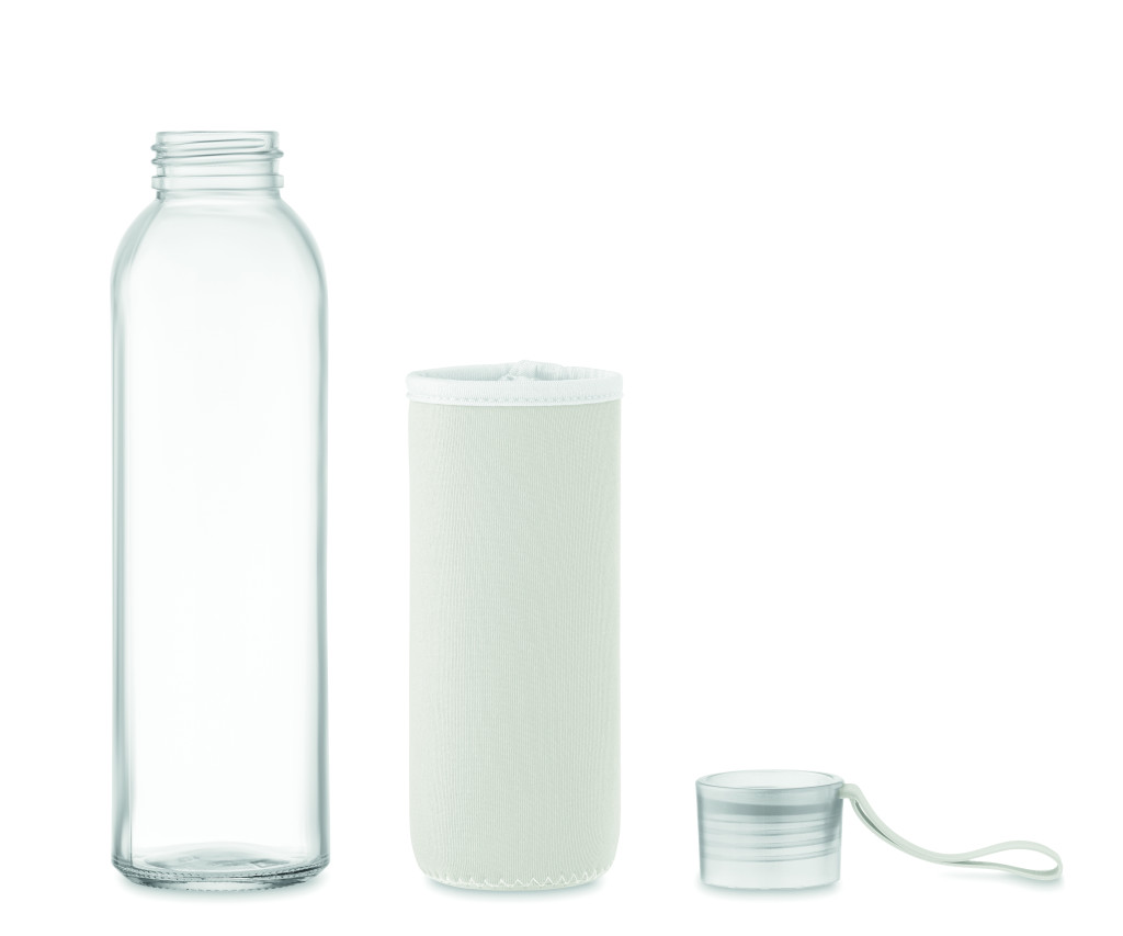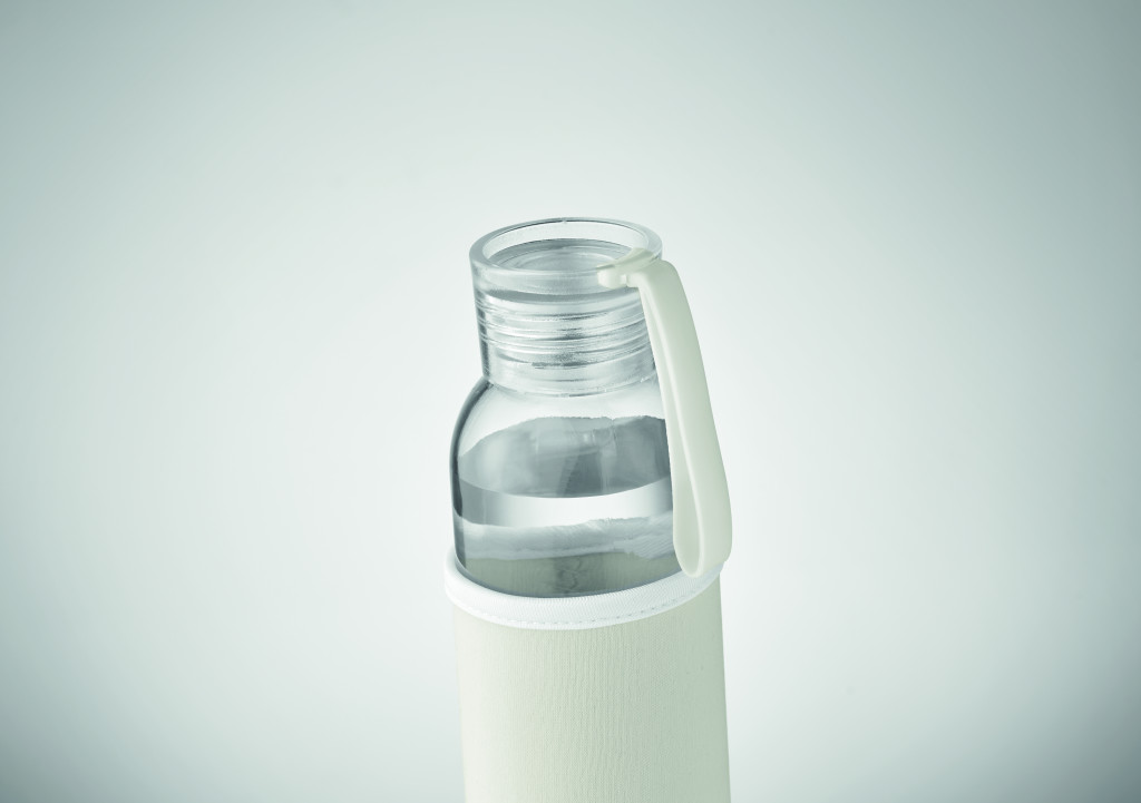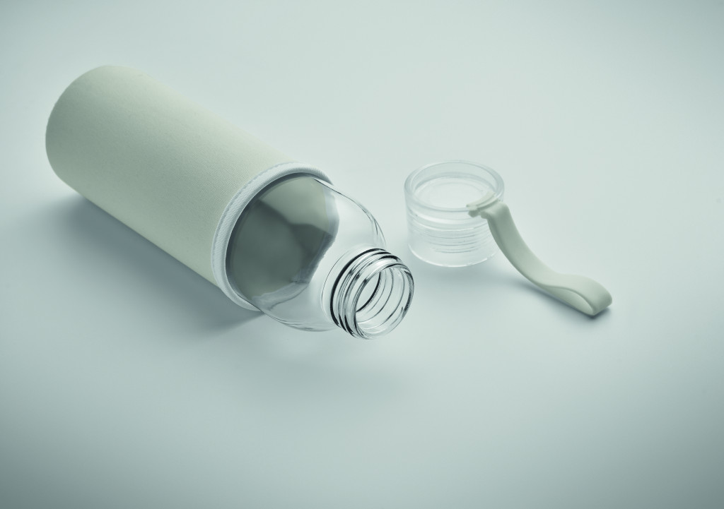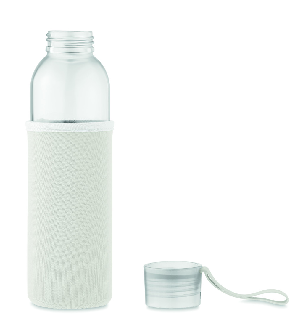 Újrahasznosított üveg palack neoprén tokkal, PP fedéllel, szilikon akasztóval. Szivárgásmentes. Űrtartalom: 500 ml.
