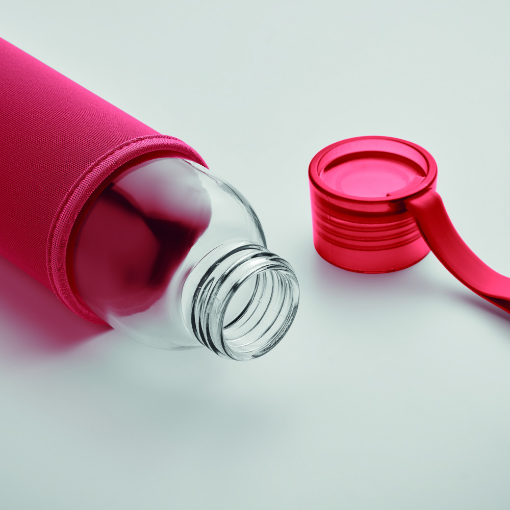 Újrahasznosított üveg palack neoprén tokkal, PP fedéllel, szilikon akasztóval. Szivárgásmentes. Űrtartalom: 500 ml.