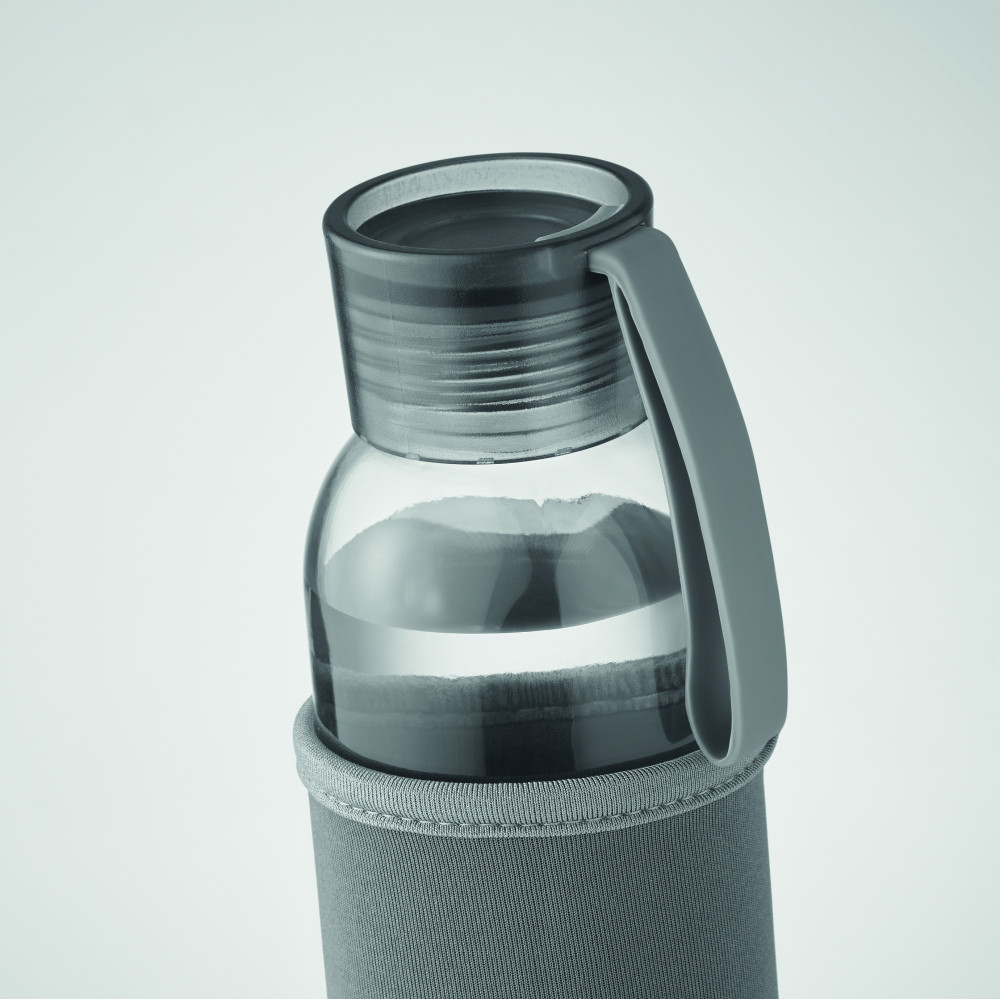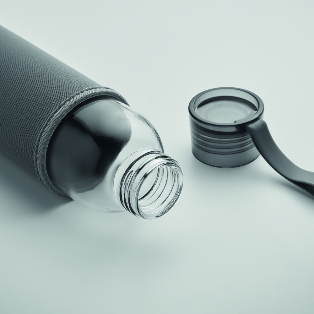 Újrahasznosított üveg palack neoprén tokkal, PP fedéllel, szilikon akasztóval. Szivárgásmentes. Űrtartalom: 500 ml.
