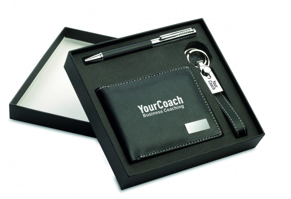 ELEGANCI Kulcstartó, toll, tárca szett, fekete