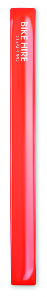 Neon színű fényvisszaverő PVC karkötő, fehér hátsó résszel. Csak promóciós célra. 32x3cm.