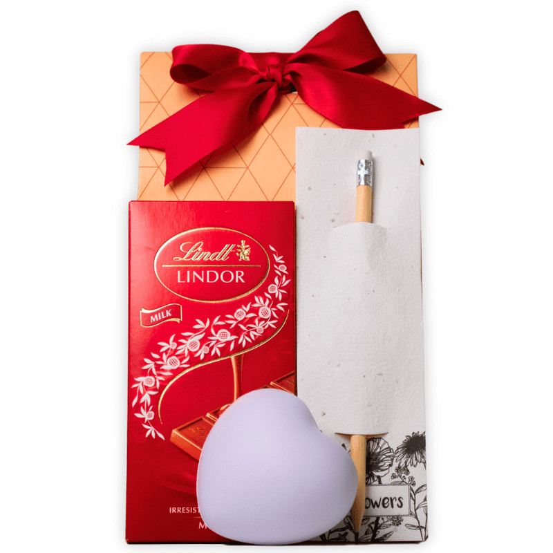 A mindennapok kis varázslata egy dobozba zárva! A "Everyday Magic" ajándékcsomag kreatív és kedves meglepetésekkel örvendezteti meg a címzettet: virágmagos ceruza, stresszoldó szív és egy tökéletesen lágy Lindt csokoládé – mert a boldogság néha az apró részletekben rejlik!