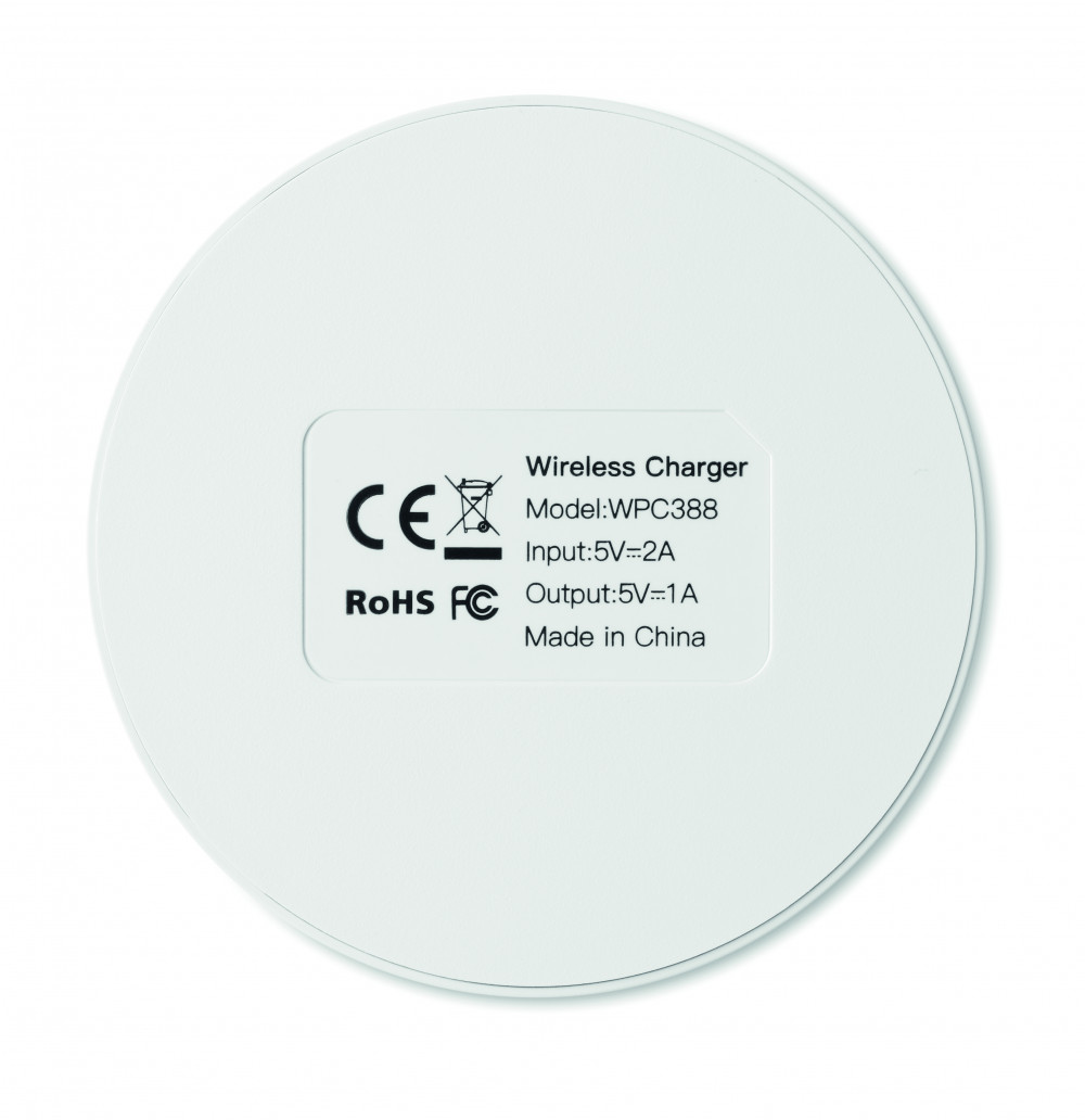 Vezeték nélküli töltő. Helyezze rá a telefont a töltéshez. Teljesítmény: DC5V/1A (5W). Ideális 4 szín kolor emblémázáshoz.