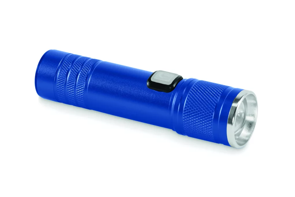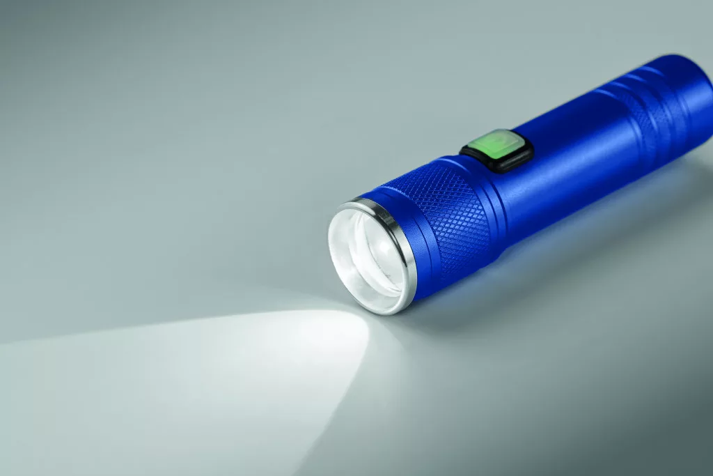 Újratölthető COB zseblámpa újrahasznosított alumíniumból. 100 lumen fényerővel, 3 fénybeállítással és fókuszálási funkcióval. Beépített 800 mAh újratölthető akkumulátor. Töltőkábellel.