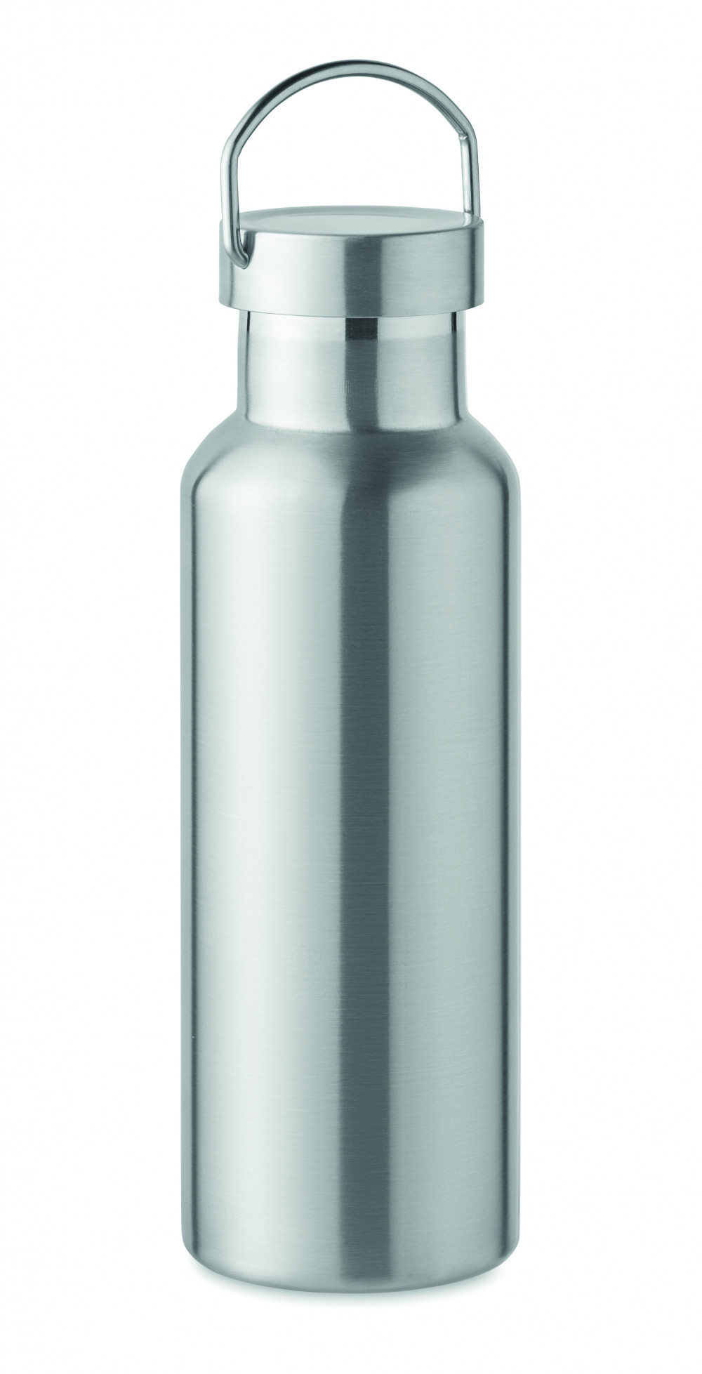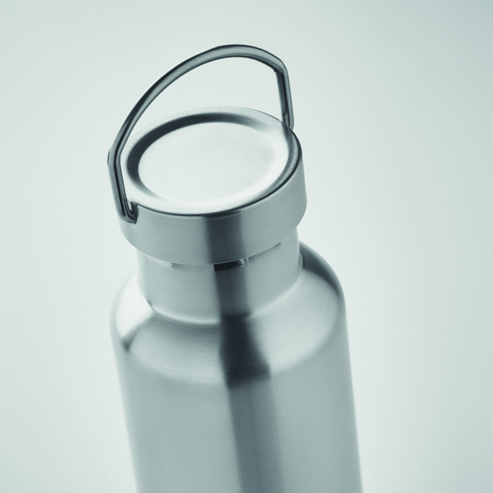 Duplafalú termoszpalack újrahasznosított rozsdamentes acélból (90% újrahasznosított rozsdamentes acél és 10% rozsdamentes acél), fogantyúval ellátott fedéllel. Szivárgásmentes. Űrtartalom: 500 ml.