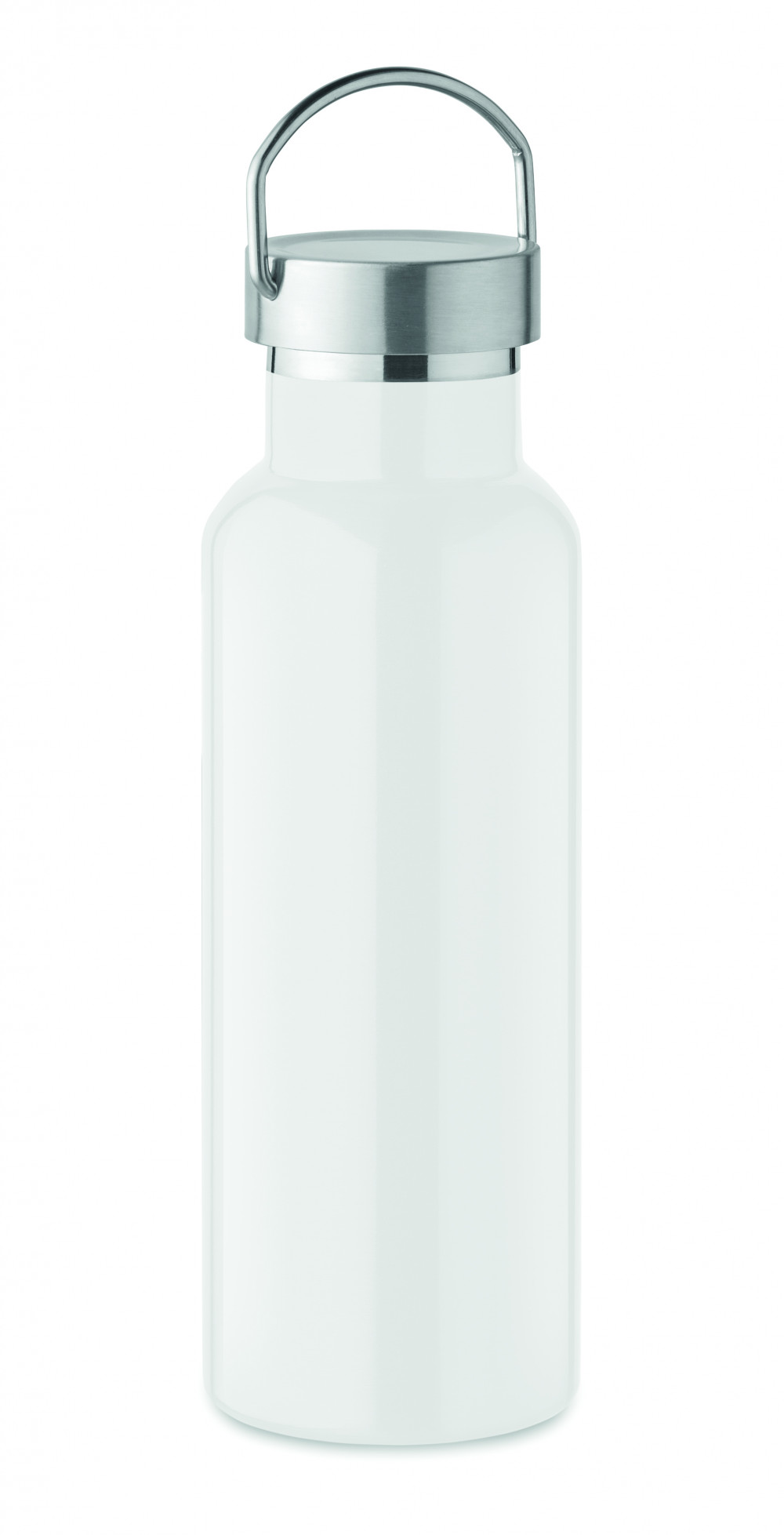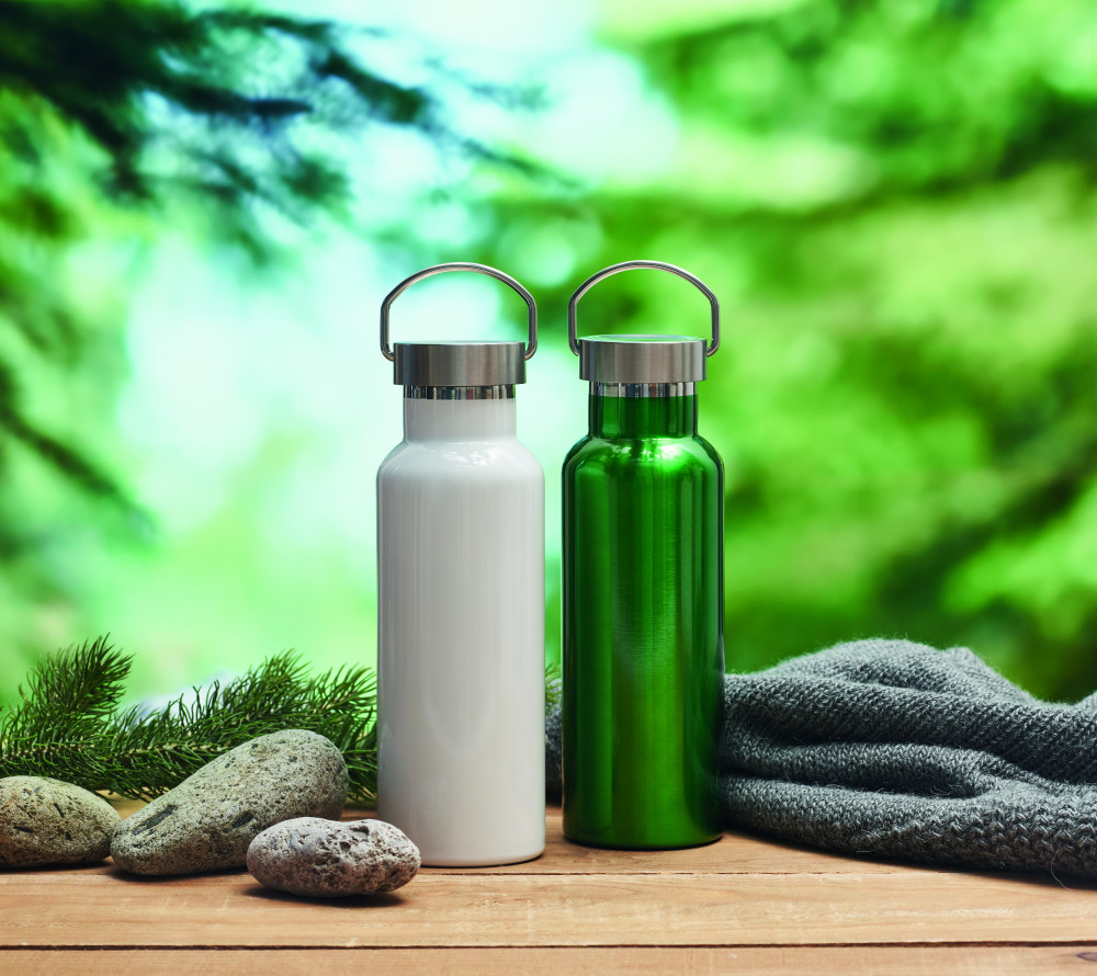 Duplafalú termoszpalack újrahasznosított rozsdamentes acélból (90% újrahasznosított rozsdamentes acél és 10% rozsdamentes acél), fogantyúval ellátott fedéllel. Szivárgásmentes. Űrtartalom: 500 ml.