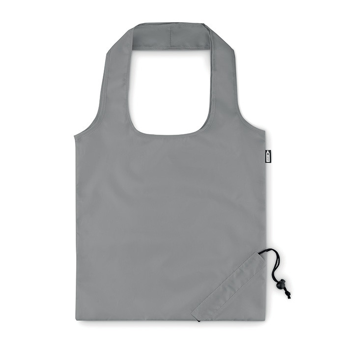 Összehajtható bevásárlótáska 190T RPET anyagból. A táska egyik sarkában kialakított praktikus húzózsinóros résznek köszönhetően kicsire összehúzható. A szublimációs nyomtatás csak a fehér színű terméken érhető el.
